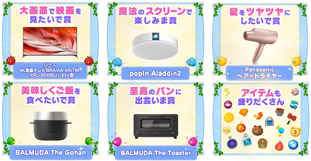 「LINE バブル2」の7周年を記念して、豪華景品が当たるプレゼントキャンペーンを実施いたします。期間中にゲーム内ミッションをクリアすると応募券がもらえます。応募券を集めて欲しい賞品に応募してください。