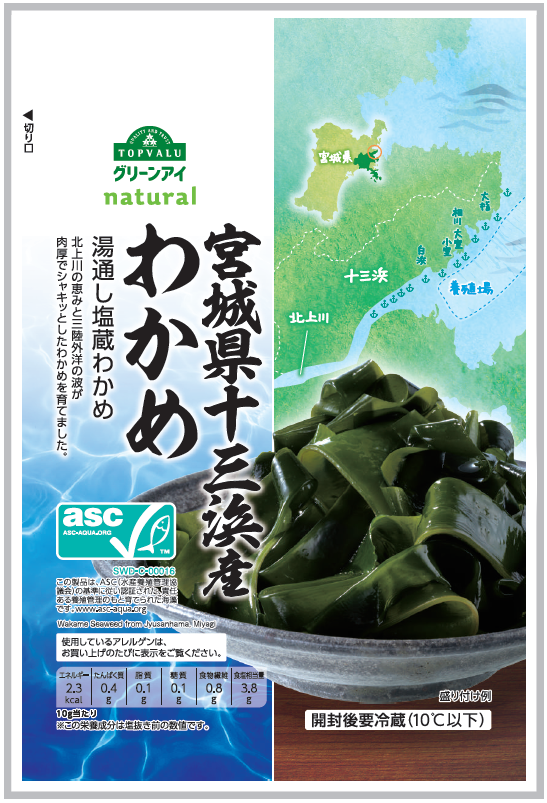 トップバリュ グリーンアイナチュラル「宮城県十三浜産わかめ」(湯通し塩蔵)販売開始!