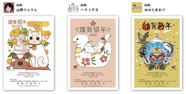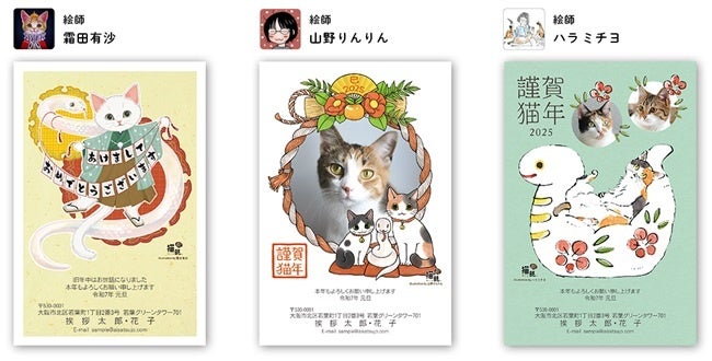 愛され続けてコラボ10周年!猫が主役の年賀状「にゃん賀状」に人気作家4名が描く猫部コラボデザイン〈2025年版〉が新登場!