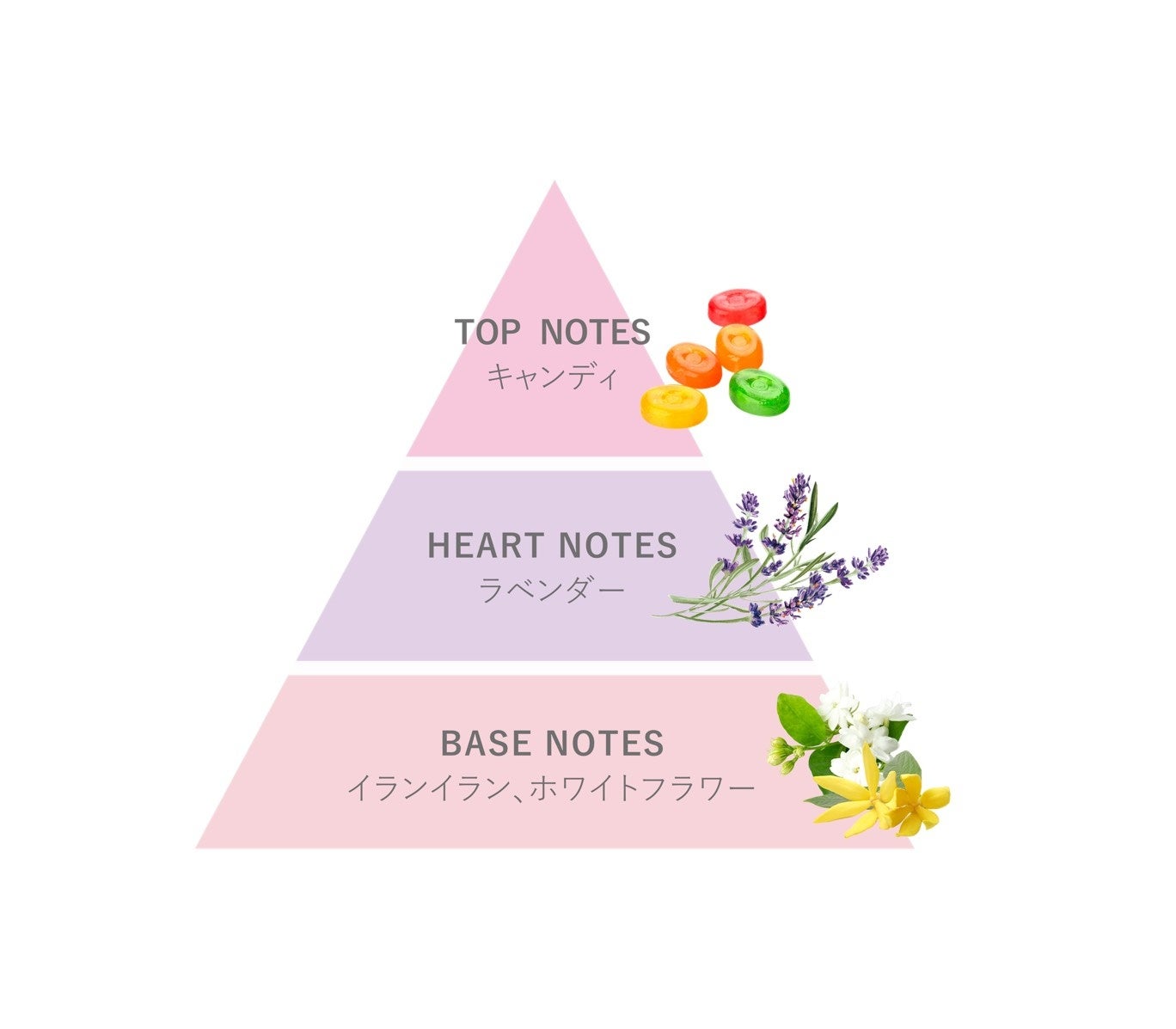 ラベンダーの爽やかな香りに、白い花々の温もりやイランイランの重厚な調べが重なり、心をゆるやかにほぐしていくようなアロマティックフローラル。静かに自分に向き合う時間に寄り添ってくれる、優しく静謐な香り。