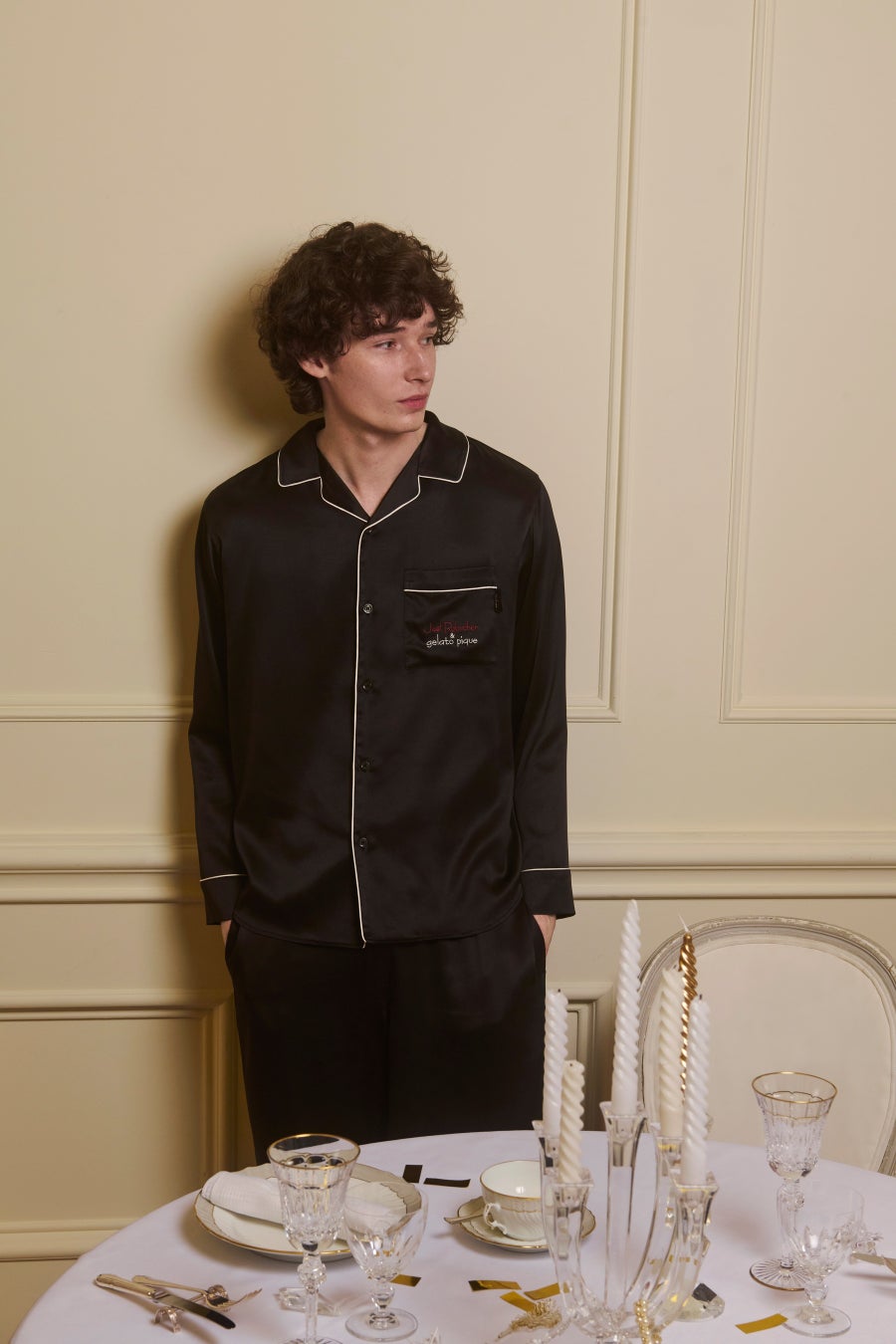 レディースサイズは、Joël Robuchonのスペシャリテである、カリフラワーのクリームとパセリのピュレでドットを描いた料理から着想を得たドット柄、メンズサイズは艶やかなブラックのサテンシャツがラインアップ。パイピングやロゴ刺繍など細部までこだわり抜かれたデザインです。
