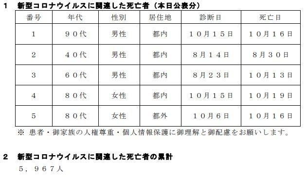 都内で新型コロナウイルスに感染した方が死亡されましたのでお知らせします。