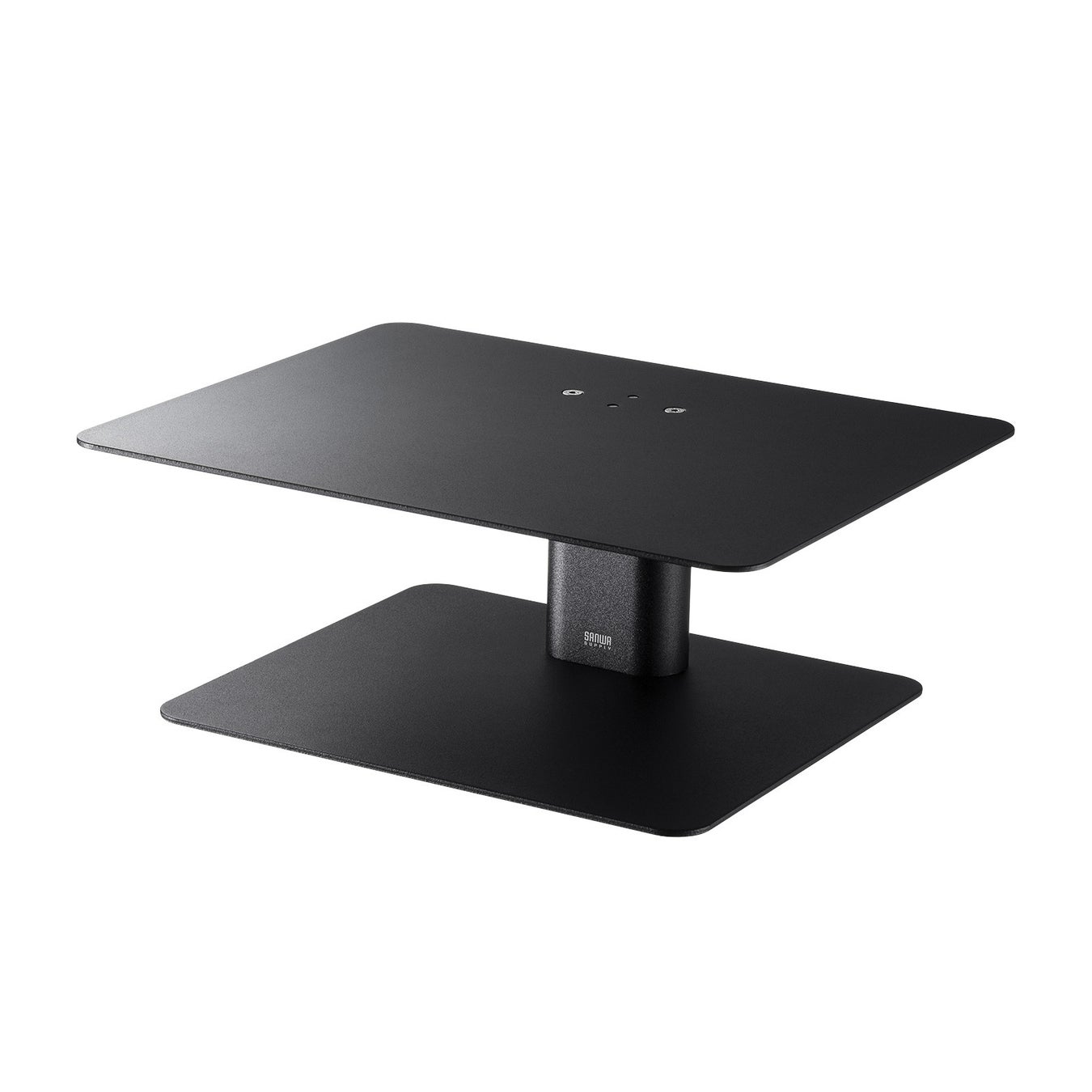 頑丈で安定感のあるスチール製のスタンドで、最大10kgまでの機器を置くことができます。天板が水平なので、ノートパソコンだけでなく、小型プロジェクターやスキャナ、小型プリンタなども設置できます。