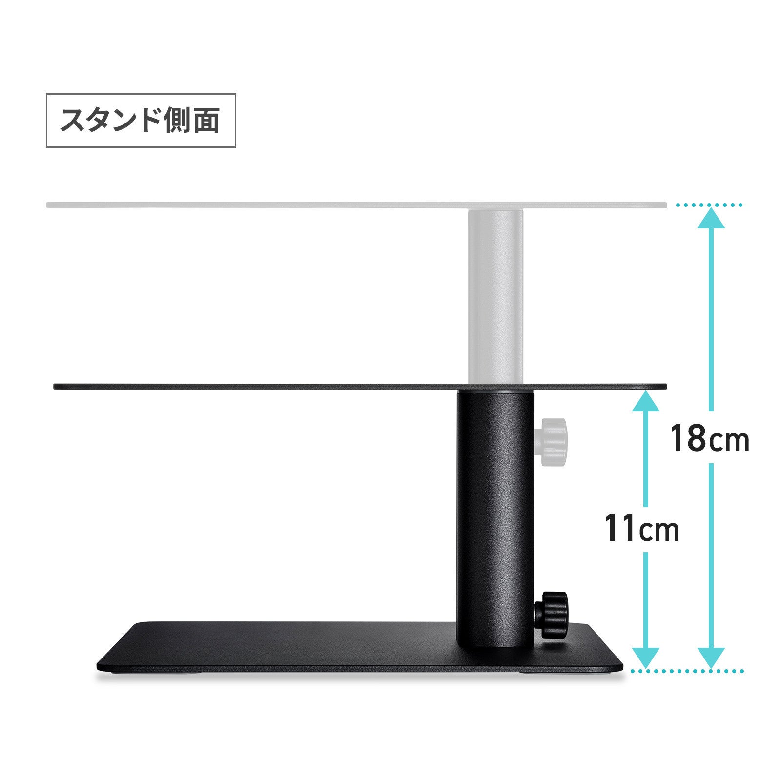 「PDA-STN66BK」は、1本支柱で下のスペースを有効活用できる、高さ調節対応の卓上スタンドです。