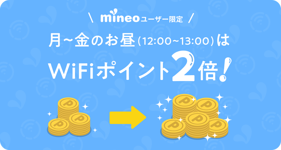 ■「mineo」ユーザーは月曜から金曜の昼12時~13時の『WiFiポイント』獲得倍率が2倍に