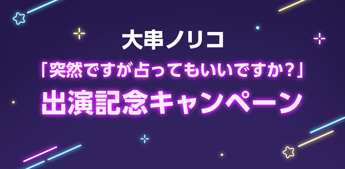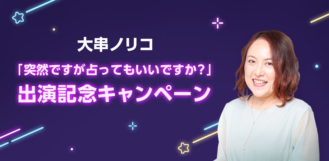 また、「LINE占い」では、大串ノリコのオリジナルメソッド「来照術(イルミナフォーチュン)」の新着メニューが登場。対象の占いメニューが楽しめ、さらに大串ノリコ監修のプレゼントがもらえるキャンペーンを実施いたします。