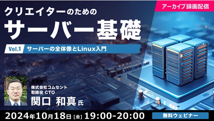 株式会社クリーク・アンド・リバー社(C&R社)は、今年8月に開催したオンラインセミナー「クリエイターのためのサーバ基礎 Vol.1 ~サーバの全体像とLinux入門~」を、10月18日(金)に無料配信します。