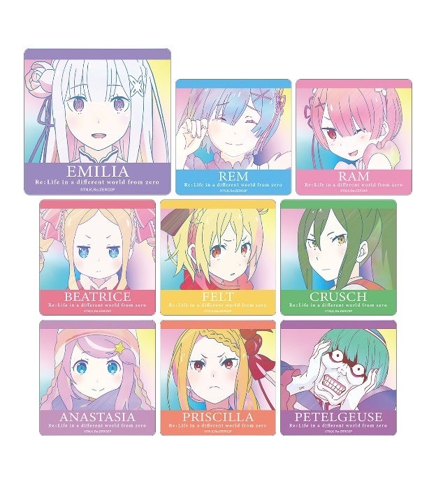 エミリア、レム、ラム、ベアトリス、フェルト、クルシュ、アナスタシア、プリシラ、ペテルギウスを新たなタッチで魅力的に表現しました。