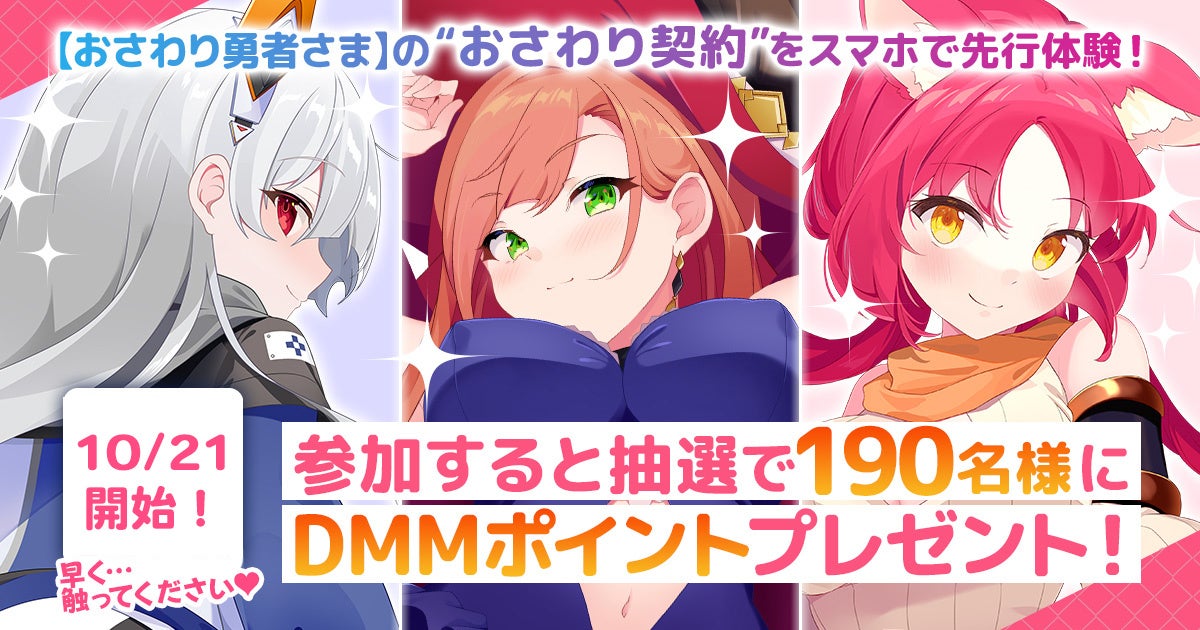 たくさん触ってDMMポイントをもらっちゃおう!PC/スマートフォンブラウザ向けカジュアルRPG『おさわり勇者さま』にて「おさわり契約先行体験会」&「おさわりレイド」キャンペーン開催中!