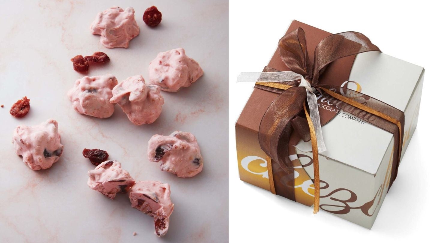 ヨーグルトチョコに、ドライクランベリーとフィヤンティーヌをミキシング。ヨーグルトの酸味と甘酸っぱいクランベリーがみずみずしく、フィヤンティーヌのサクサク食感が小気味のいいアクセントに。ありそうでなかったチョコでやみつき。