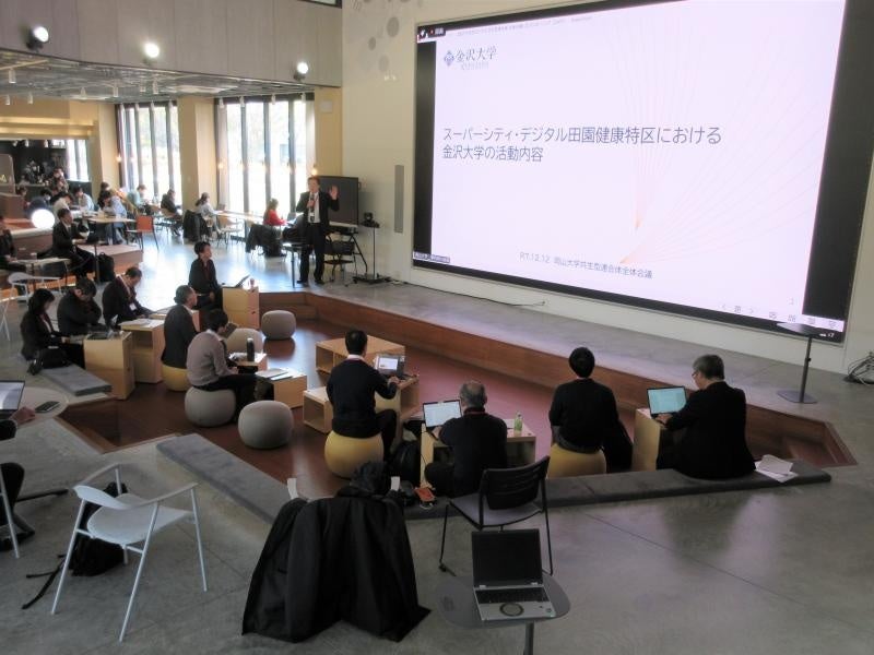 その後、各大学・地域での、スーパーシティ型国家戦略特区やデジタル田園健康特区等の枠組みを活用した医療DXや救急医療体制の高度化、地域と連携したヘルスケア・予防医療・救急医療の取り組み、自治体職員を大学に受け入れる地域共創研究員制度、全国医療情報プラットフォームやPHRを見据えたデータ利活用の実証、学生主体の地域課題解決プロジェクトや「岡山テックガレージ」による学生ベンチャー育成など、各地域の課題解決に向けた特色ある事例紹介が行われました。