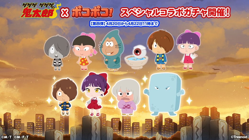 本コラボレーションでは、「鬼太郎」、「目玉おやじ」、「ねずみ男」、「ねこ娘」、「砂かけばばあ」、「子泣きじじい」、「一反もめん」、「ぬりかべ」たちがコラボ限定仲間として登場いたします。