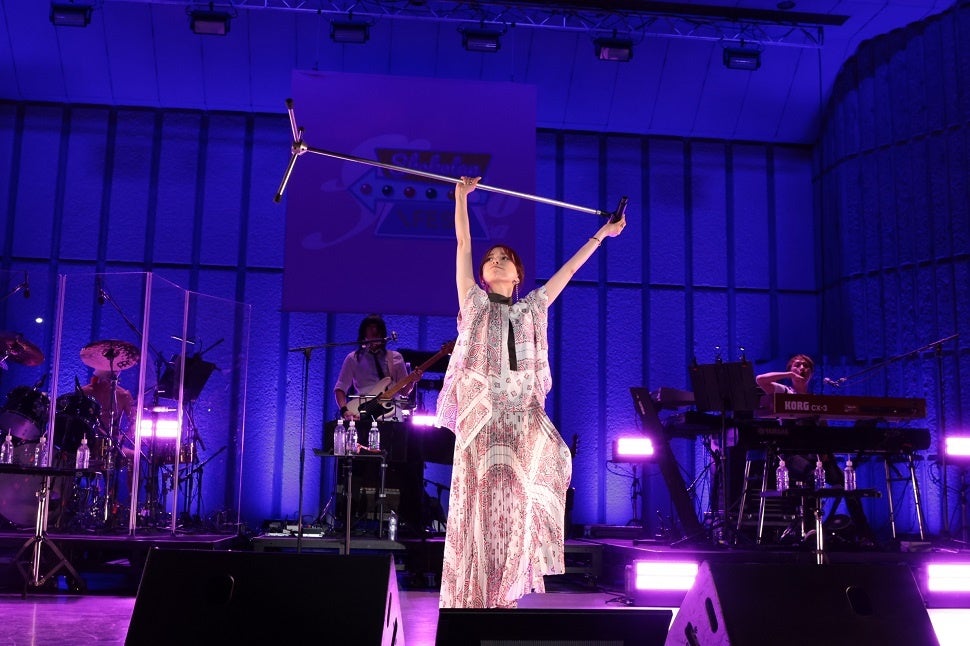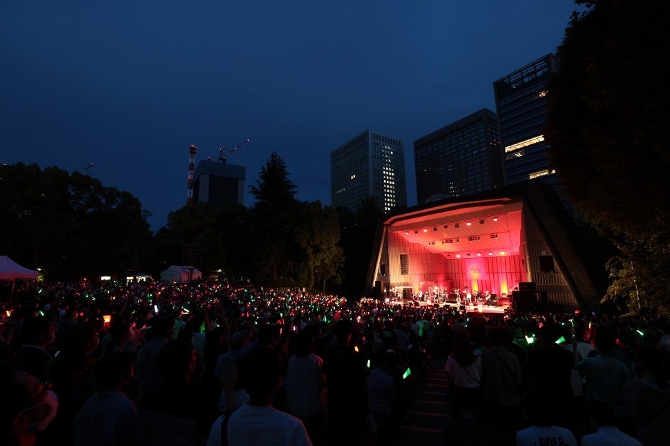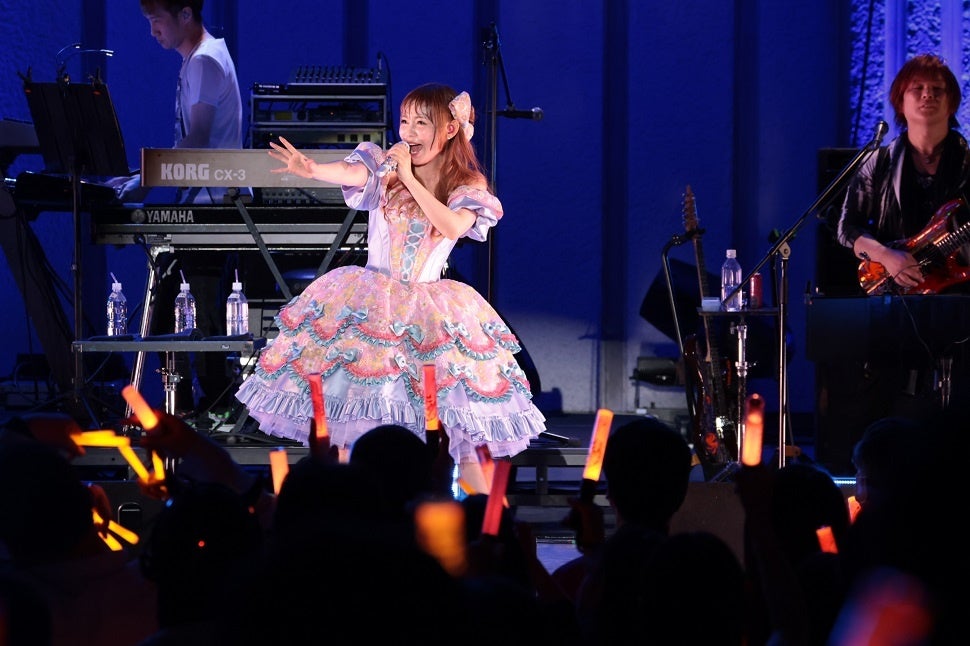 後のMCで「翔子ちゃんが好きって言ってた曲でセトリを作りました。大事な友達で“戦友”という気持ちもある翔子ちゃんのために歌います」と語った彼女は、スペーシーなサウンドに迫力のあるロングトーンを轟かせた「スターゲイズ・ラブ」から「明日のプリズム」「MonStAR」とハッピーなムードのポップロックを立て続けに披露。パワフルかつ伸びやかな歌声を野音ならではのマジックアワーの背景が光るステージに響かせると、テレビアニメ『涼宮ハルヒの憂鬱』のオープニングテーマとして大ヒットした「冒険でしょでしょ?」に続き、同作の劇中曲で中川も2010年のカバーアルバム「しょこたん☆かばー3 〜アニソンは人類をつなぐ〜」でカバーしている「God knows...」で2人のコラボレーションが実現。「あやちゃんかわいい、大好き。今日のこの時間を一生忘れません」と興奮気味の様子でステージに上がった中川は、平野の隣で歌いながら溢れる思いが止まらずオタ芸を繰り出していた。そして<重なるよいま 二人にGod bless...>というフレーズでばしっと目を合わせて声を重ねると、場内は大きな歓声に包まれた。