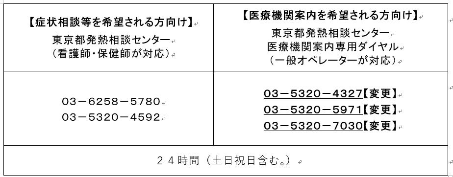 「東京都発熱相談センター 医療機関案内専用ダイヤル」の電話番号の変更について