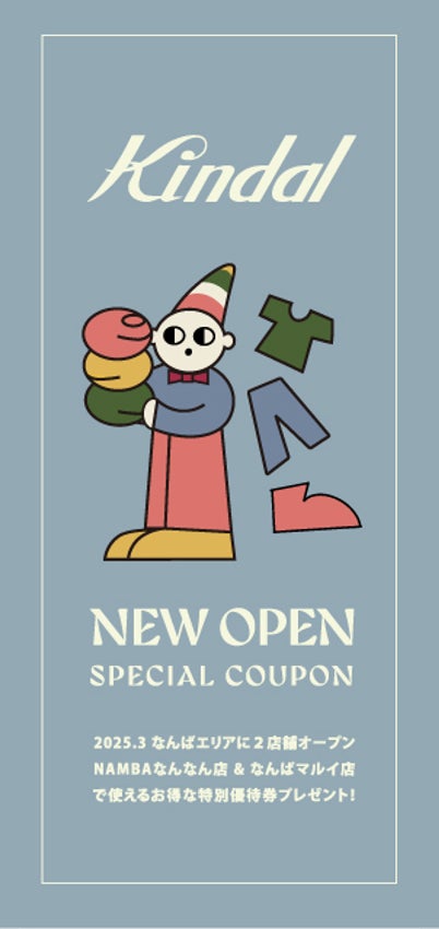 オープンを記念して「カインドオルなんばマルイ店」とともに、近隣の「カインドオルなんばウォーク店」「カインドオルなんばウォーク2号店」にて「NEW OPEN SPECIAL COUPON」を配布いたします。