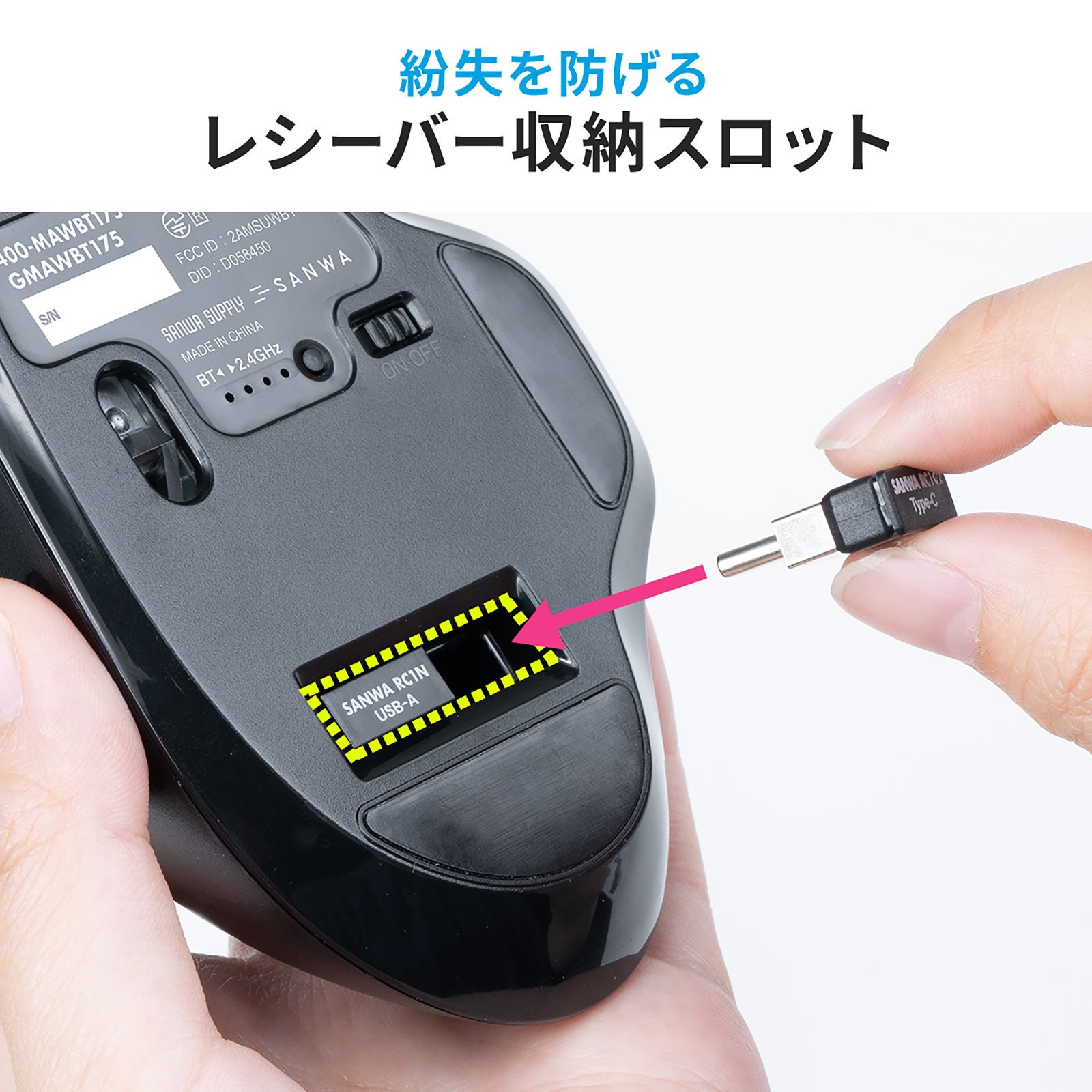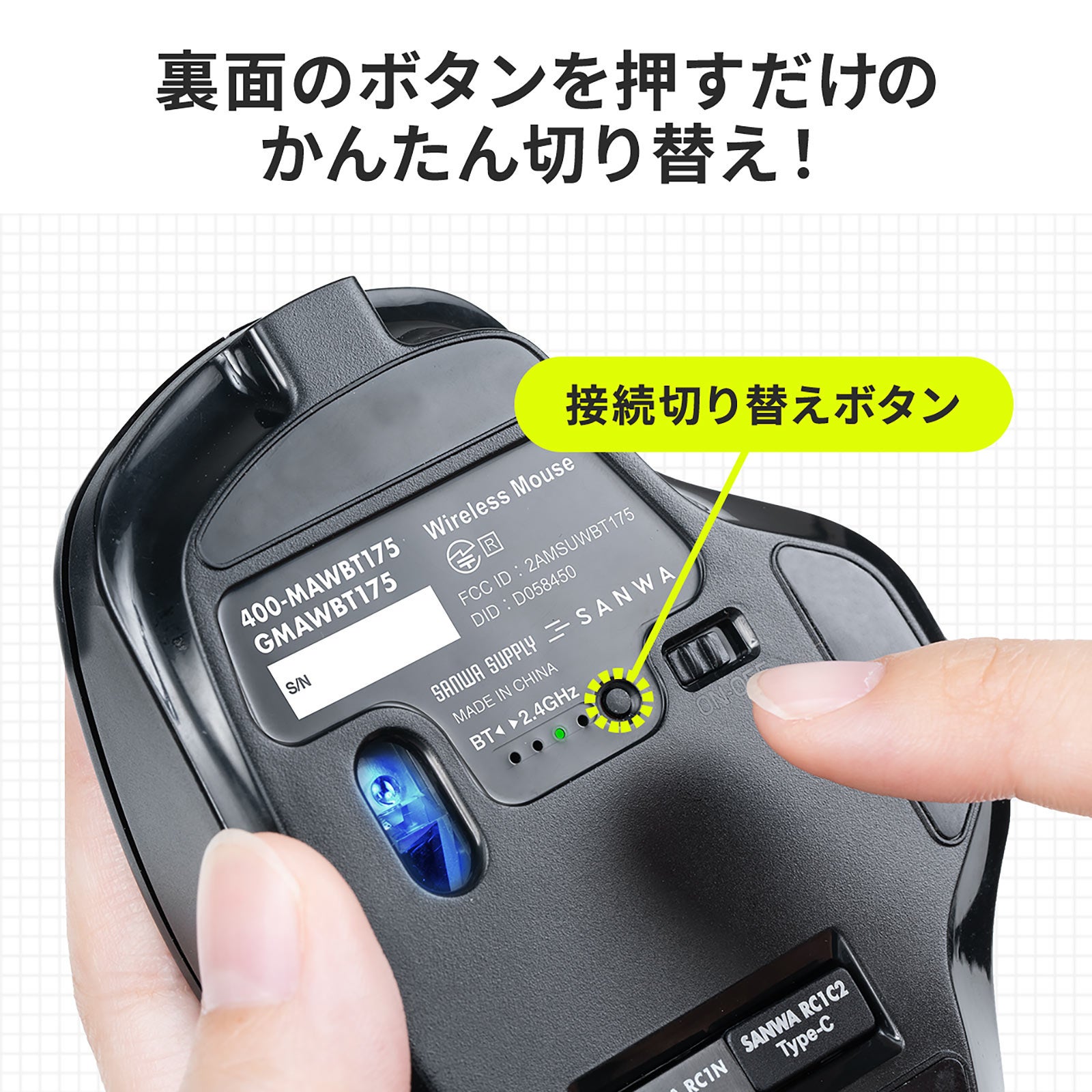 サンワサプライ株式会社(本社:岡山市北区田町1-10-1、 代表取締役社長 山田 和範)が運営している直販サイト『サンワダイレクト』では、最大4台の機器と接続して操作できる、専用レシーバー接続にも対応した静音Bluetoothマウス「400-MAWBT175」を発売しました。