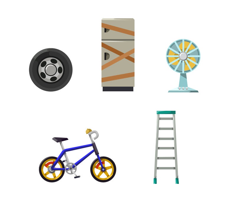 取り外されたタイヤや使い古されたレイゾウコなど、一見すると役立ちそうにないモノであふれかえっている。