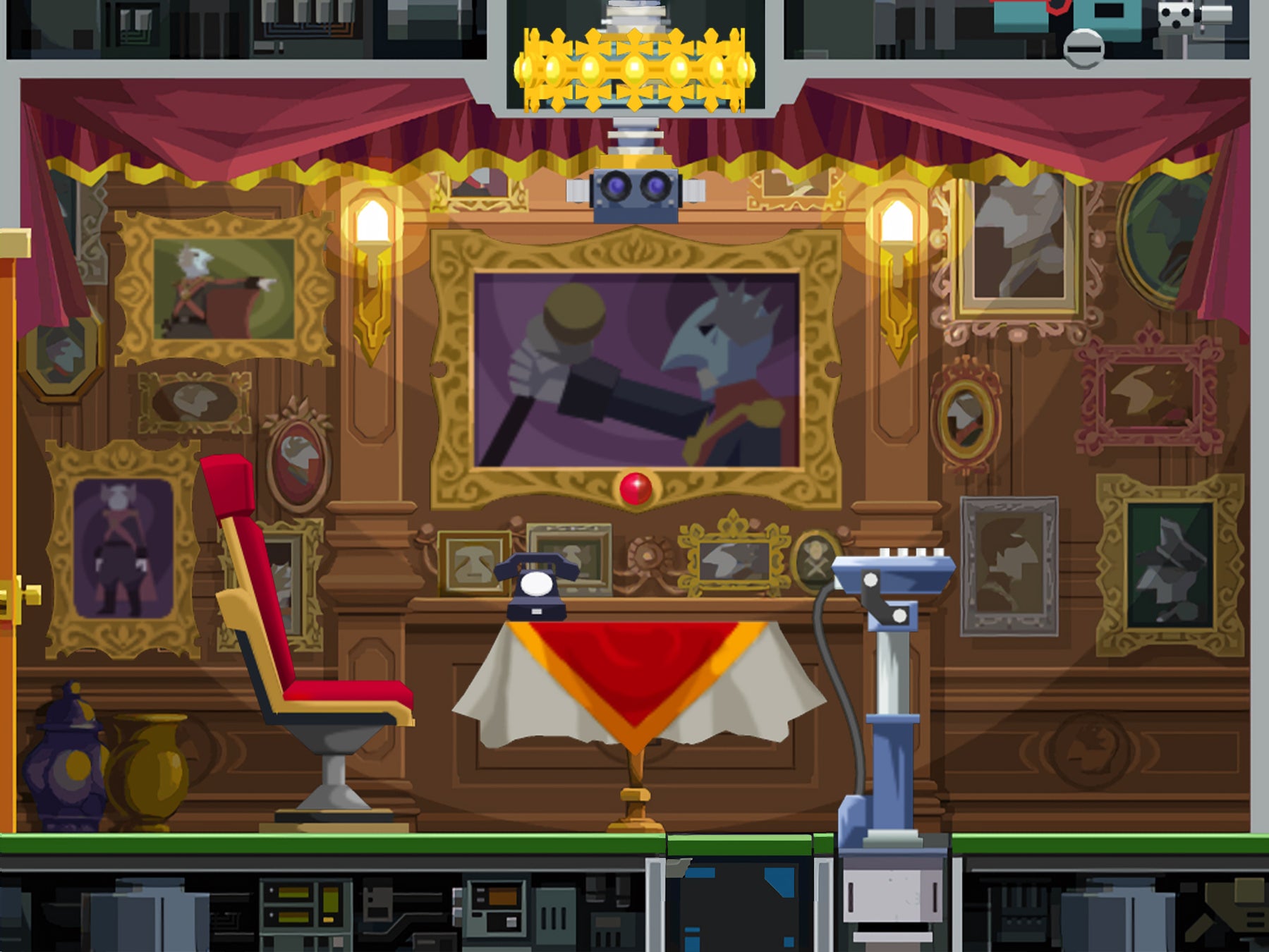高級そうな家具が揃った謎の部屋。奇妙なキカイのシカケやカイガも目に入るが…。