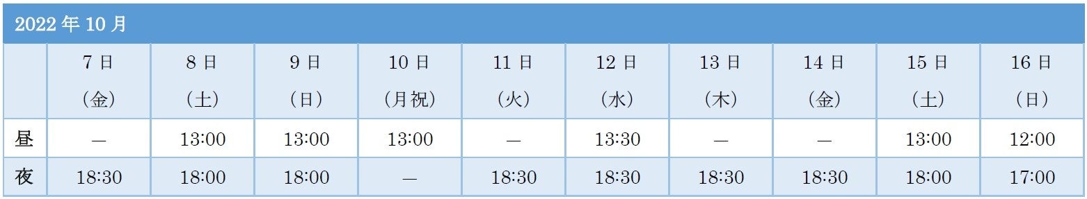 ◆公演日程: 2022年10月7日(金)〜16日(日)
