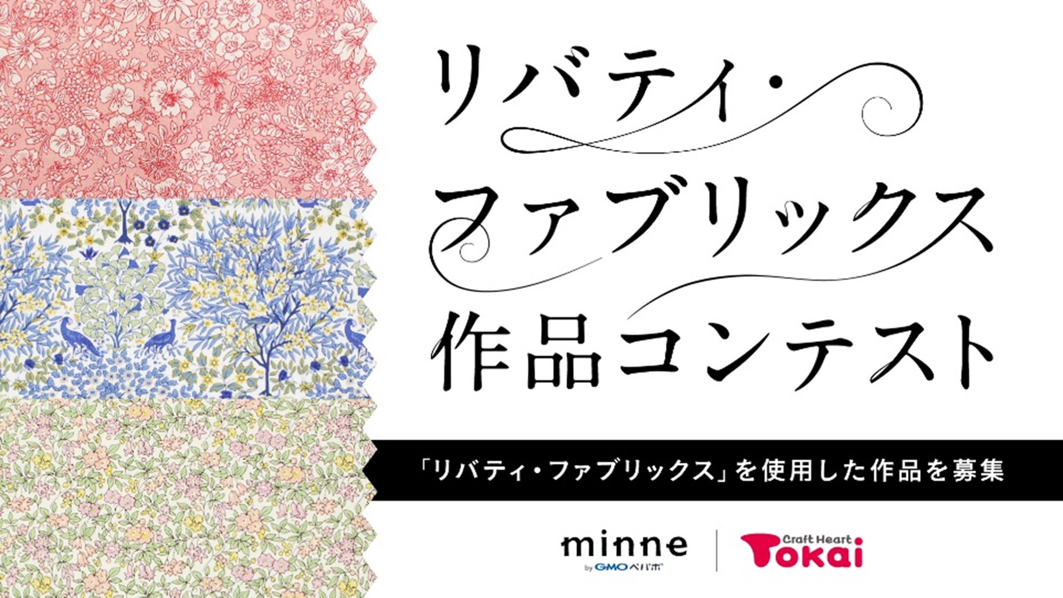 国内最大(※1)のハンドメイドマーケット「minne byGMOペパボ」(URL:https://minne.com/)などを運営する、GMOインターネットグループのGMOペパボ株式会社(代表取締役社長:佐藤 健太郎 以下、GMOペパボ)と、手芸販売専門店「クラフトハートトーカイ」を主力に、手芸用品や衣料品・服飾品、その他生活関連雑貨などを販売する藤久株式会社(代表取締役社長:筒井 和宏 以下、藤久)は、英国のリバティ社が保有するプリントデザイン「リバティ・ファブリックス」の生地を使ったハンドメイド作品のコンテスト『リバティ・ファブリックス作品コンテスト Tokai / minne byGMOペパボ』を共同で開催いたします。