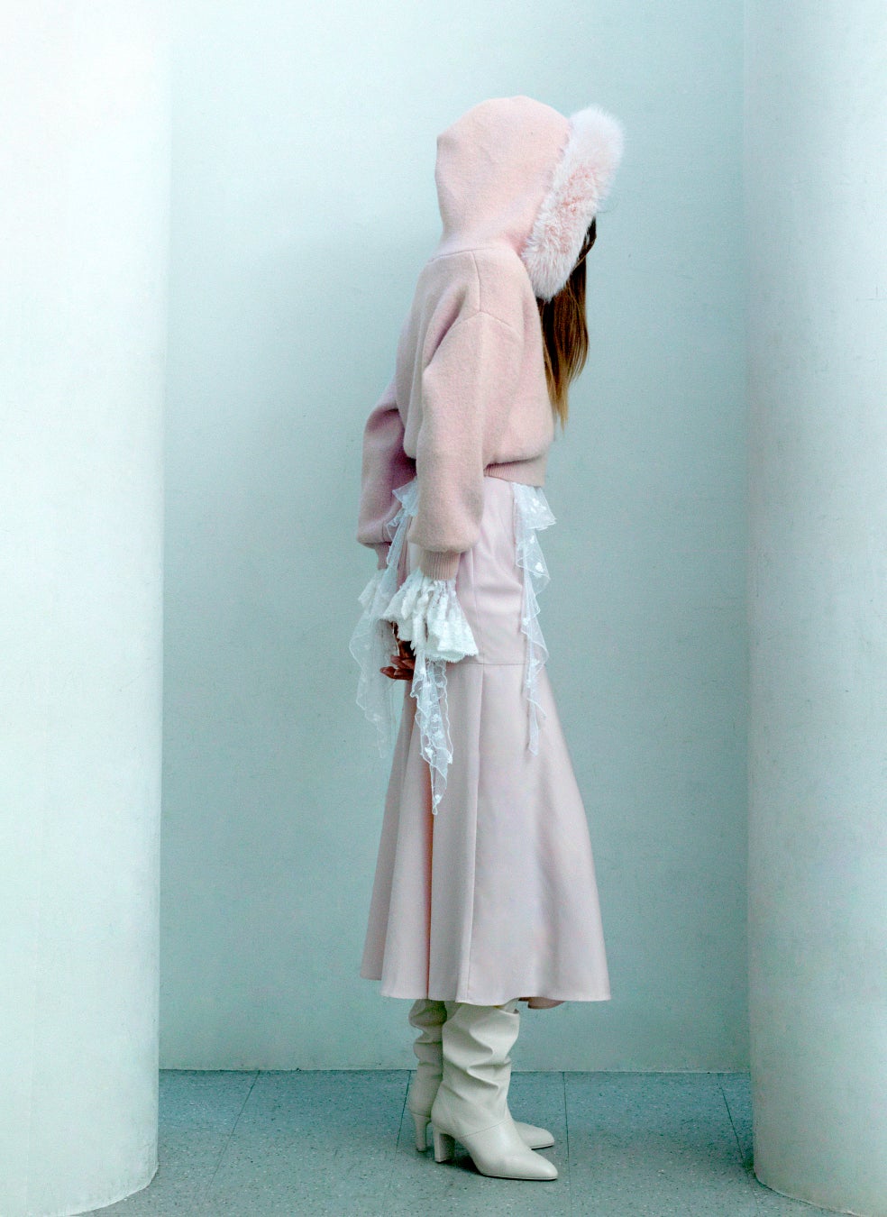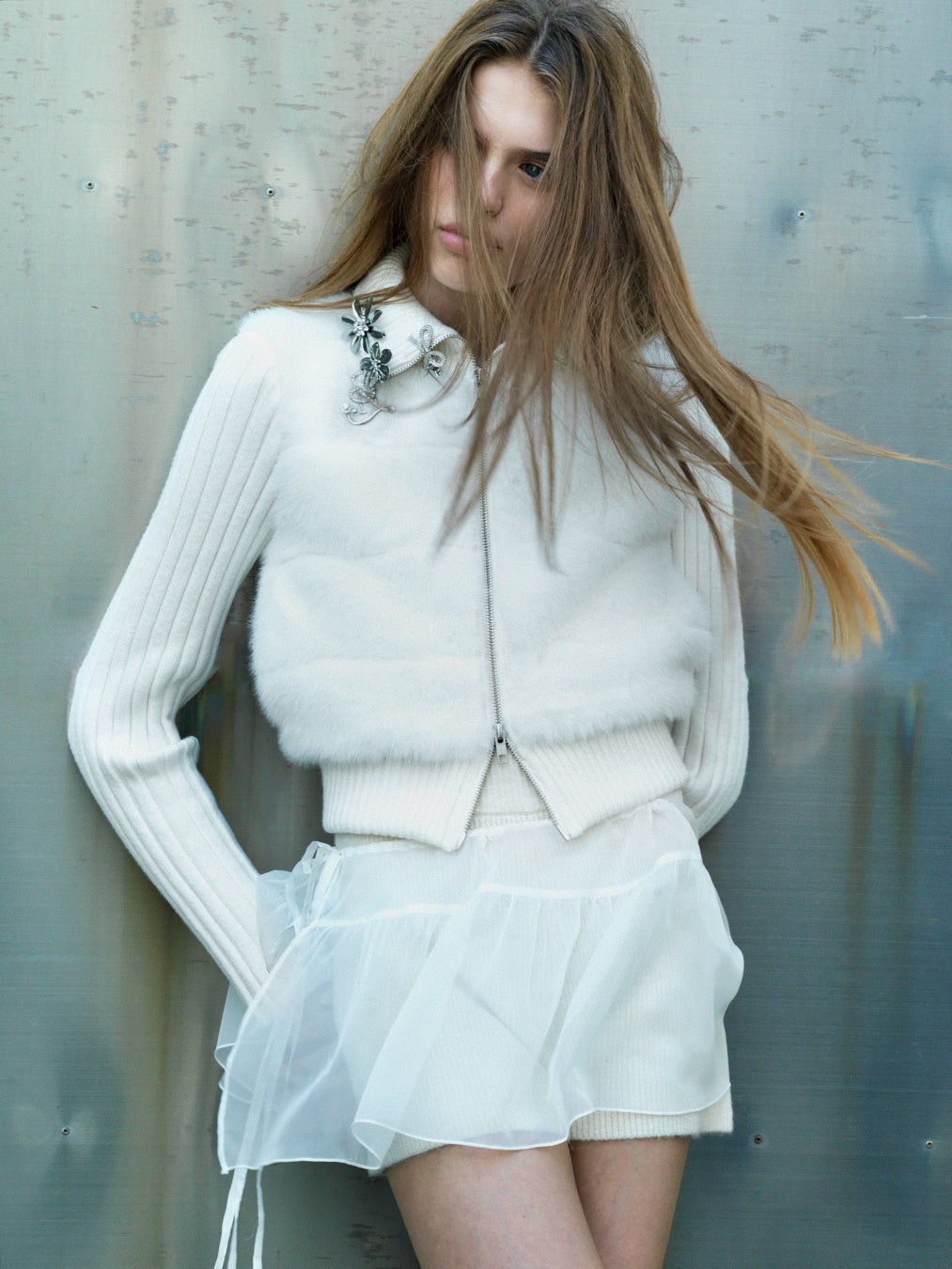 曲線的なシルエットや、フリル、ファーストールなどのフェミニンなディテールに、