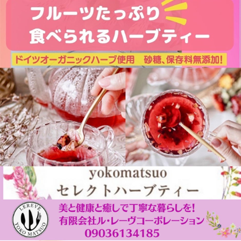 yoko matsuoのセレクトハーブティーは、毎日飲み続けることで、心身のバランスを整えママさんの健康や美容に役立つ自然からの贈り物です。疲れに嬉しいクエン酸を含むハイビスカス、ビタミン豊富なマンゴー、ベリーやスーパーフード「アサイー」をブレンドした、食べられるフルーツハーブティー『Yoko Matsuo Blend』をはじめ、美しさと健康のために欠かせないビタミン・ミネラル・鉄分などを含むハーブティーをご用意いたしました。ドイツのオーガニックハーブを使用、砂糖・保存料無添加で、素材の甘みや栄養素を丸ごと食べ飲みできるハーブティーをぜひお買い求めください。