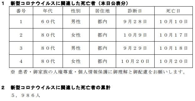 都内で新型コロナウイルスに感染した方が死亡されましたのでお知らせします。