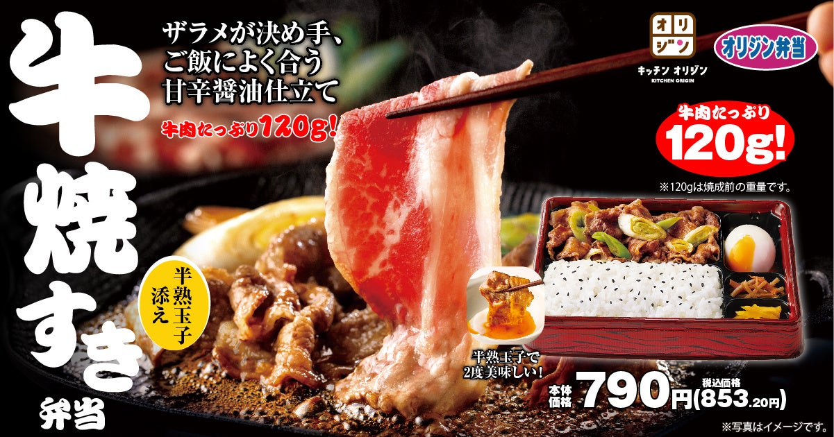 弁当・惣菜専門店「キッチンオリジン」「オリジン弁当」を展開しているイオングループのオリジン東秀株式会社(本社:東京都調布市/代表:沢村 弘也)は、4月2日(日)10時より、「牛焼すき弁当」を期間限定で販売いたします。