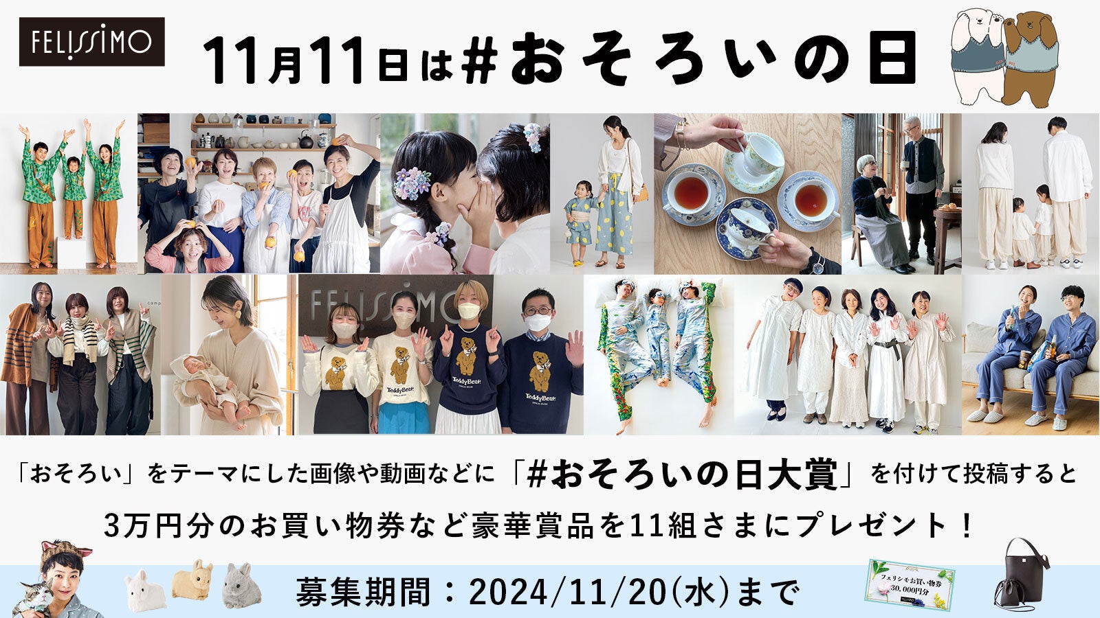 フェリシモが展開する「#おそろいの日」を楽しむSNS投稿にプレゼントを贈る『#おそろいの日大賞』(11月1日~11月20日まで開催)