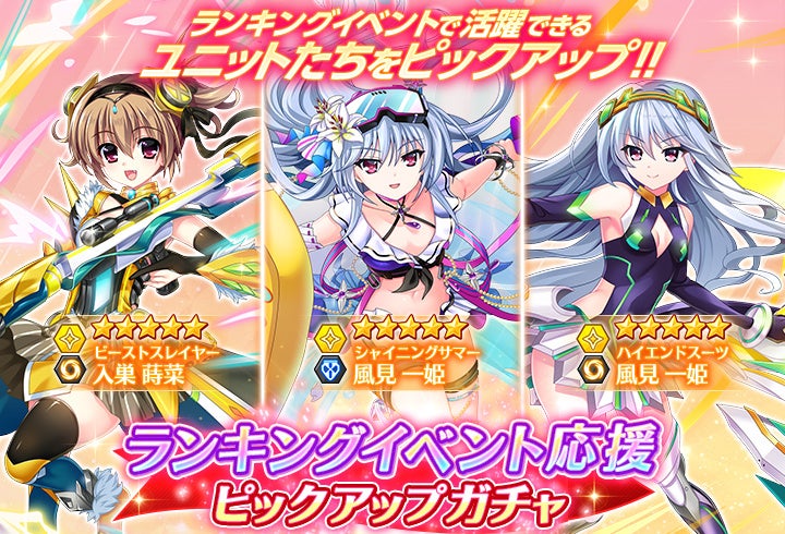 今回は2つに分かれたガチャでそれぞれ3人ずつをピックアップ!ランキングイベントで活躍できるユニットたちを編成してパーティを強化しましょう!