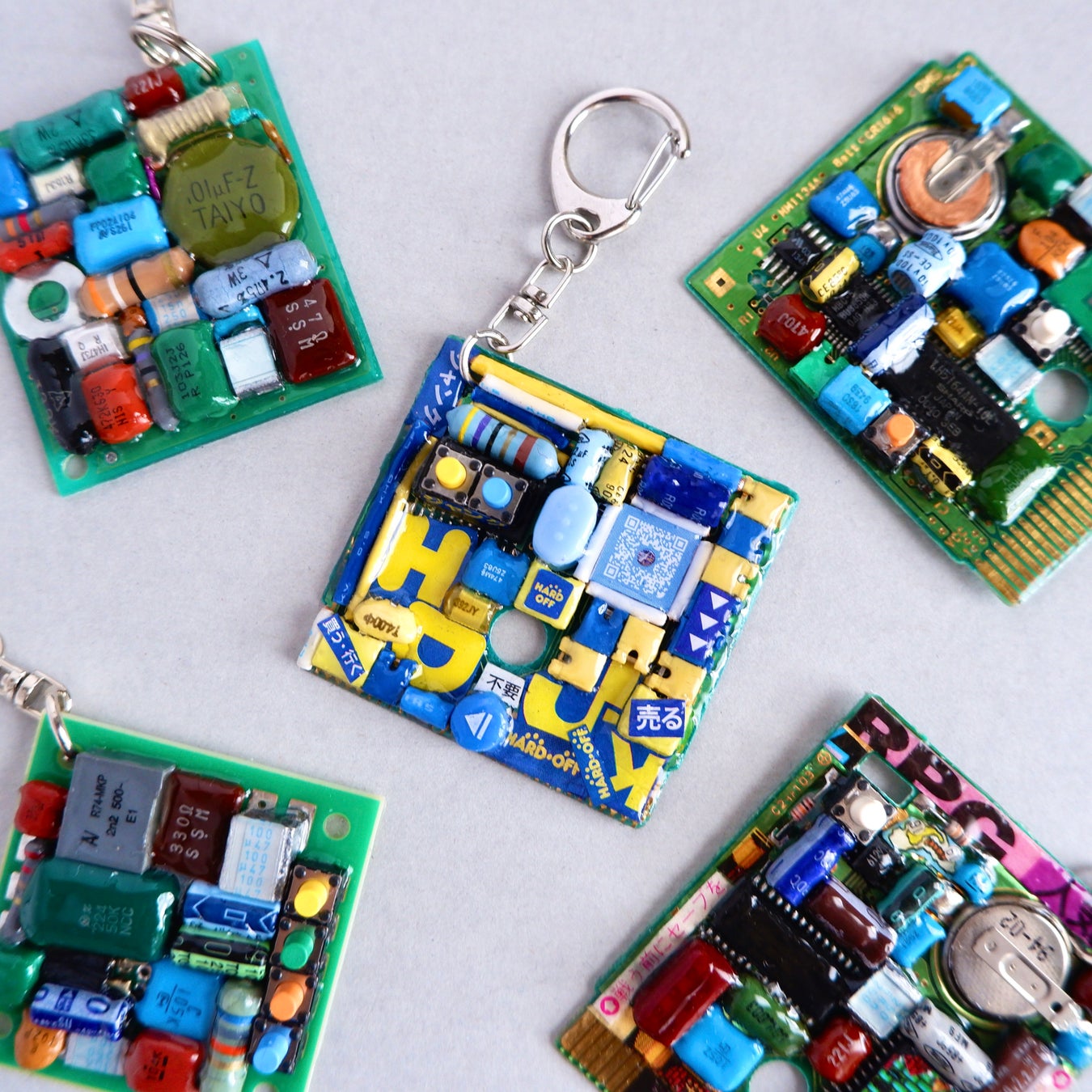 電子部品をアップサイクルして、アート作品や小物を制作しているブランド。父親が幼少期に営んでいた電気屋『新電気』をブランド名にしました。美術館のミュージアムショップや、国内外のポップアップなどに出展。今回はハードオフのジャンク品を使用して制作した作品も販売します。