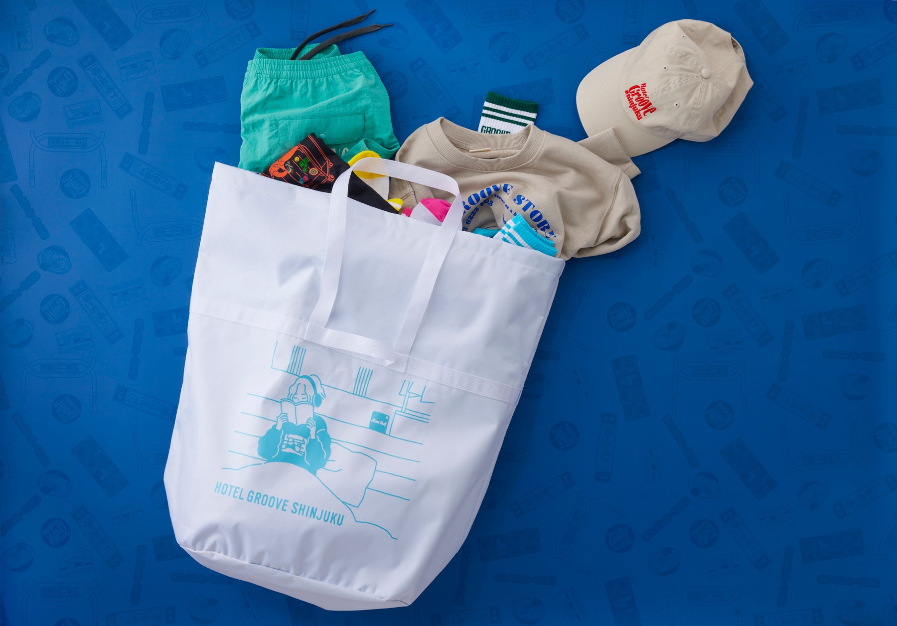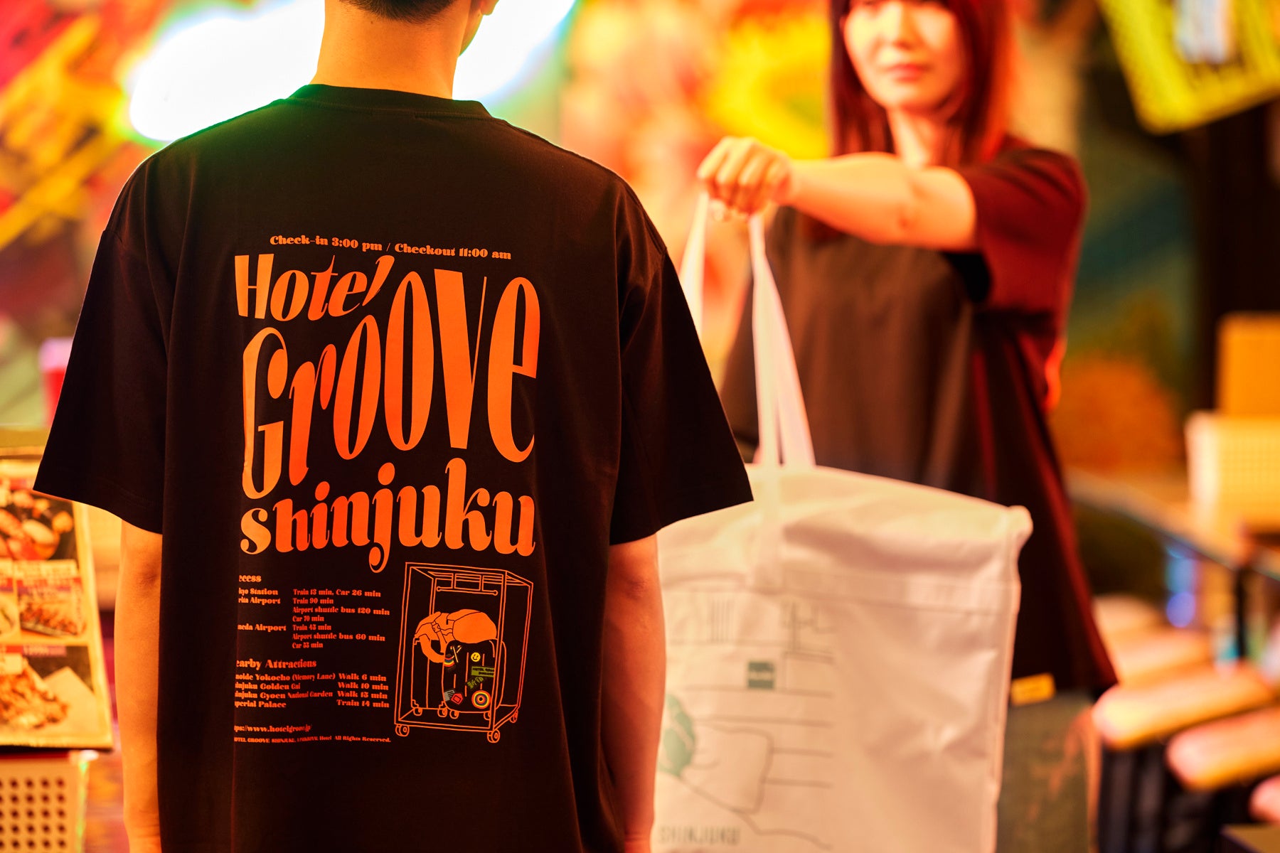 エンターテインメントやまちの余韻に浸れるこの場所ならではの独自性を体現する「THE GROOVE STORE」では、これまでホテルオリジナルグッズに加え、現代アーティストとのコラボレーショングッズやエシカルなアートマグネットなどを販売してまいりました。今回新たにラインアップに加わるのは、HOTEL GROOVE SHINJUKUの世界観と旅の記憶を日常にお持ち帰りいただくアパレルシリーズ。ホテルの“GROOVE”を感じるデザインはもちろん、オーガニックコットンなどサステナビリティにこだわるホテルだからこその素材にもこだわりました。ご自身へのご褒美としてはもちろん、大切な方へのギフトや旅の思い出としても最適です。HOTEL GROOVE SHINJUKUで過ごした特別な時間を、このオリジナルアパレルとともに、ぜひお持ち帰りください。