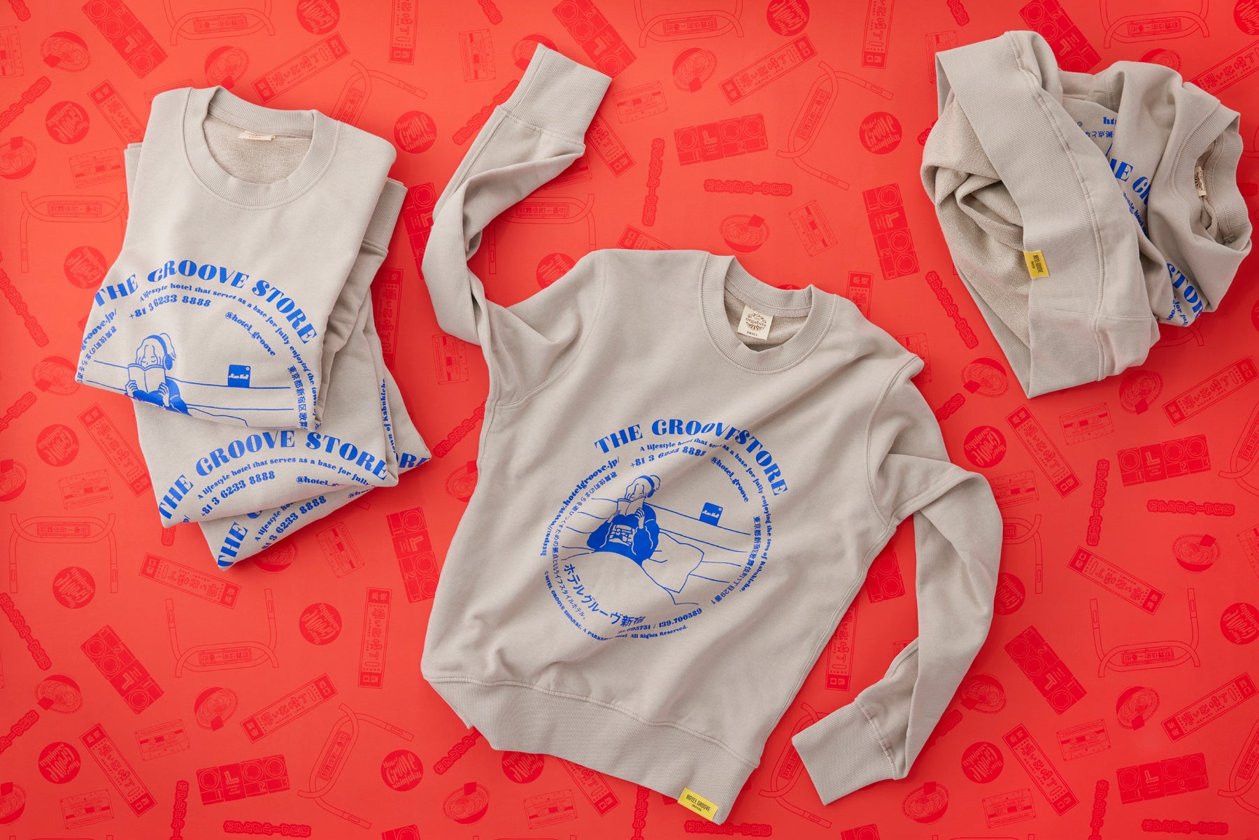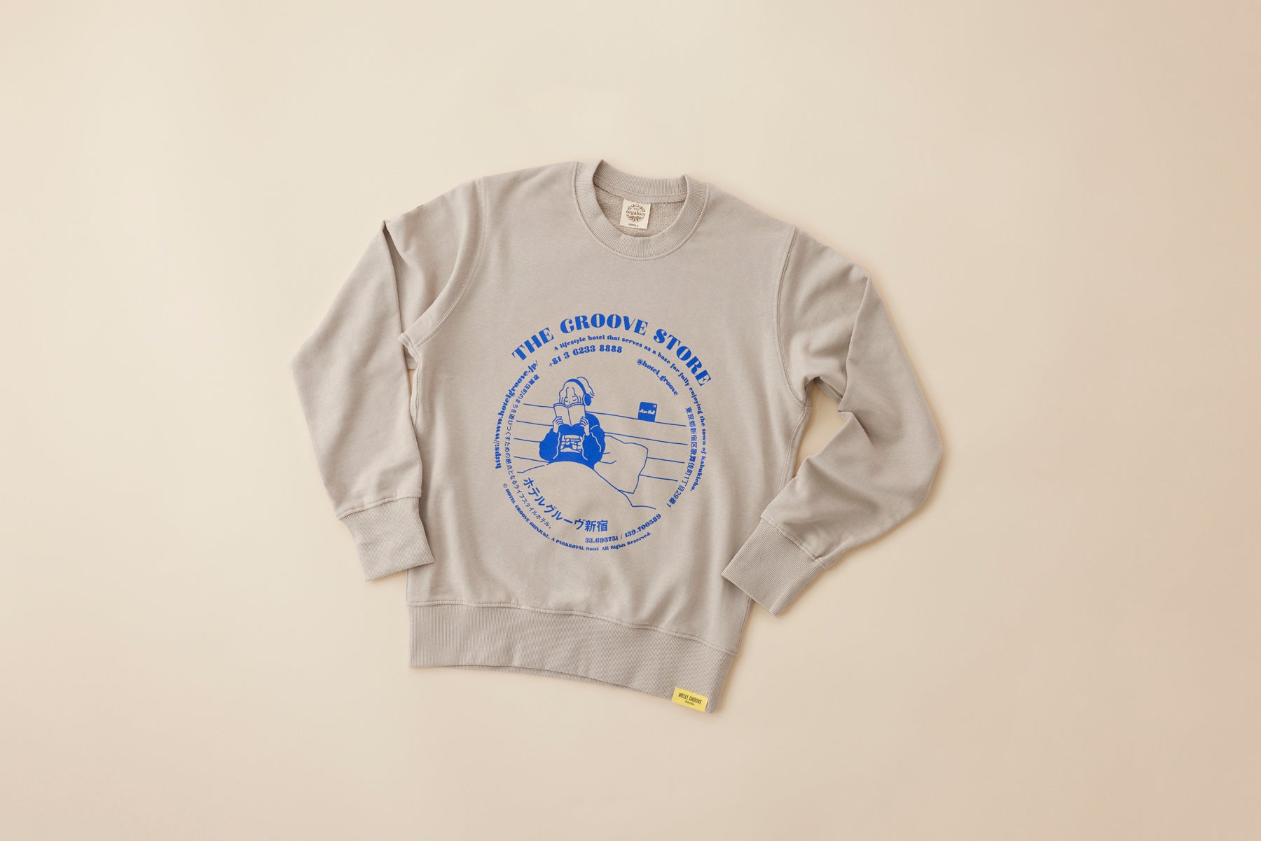 落ち着いた色合いは、どんなスタイルにも合わせやすく、長く愛用できる普遍的な魅力を持っています。まちを歩き、ホテルで過ごした“GROOVE”な体験を、このスウェットシャツとともに日常に持ち帰ってください。