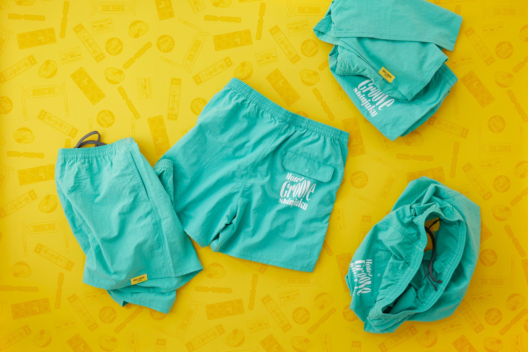 新宿・歌舞伎町のまちが持つ多彩さと、ホテルロゴからインスパイアされたグリーンカラーのナイロンショーツ。 軽量で速乾性に優れたナイロン100%素材。アクティブなシーンから日常のリラックスタイムまで着用できる機能的な一枚。