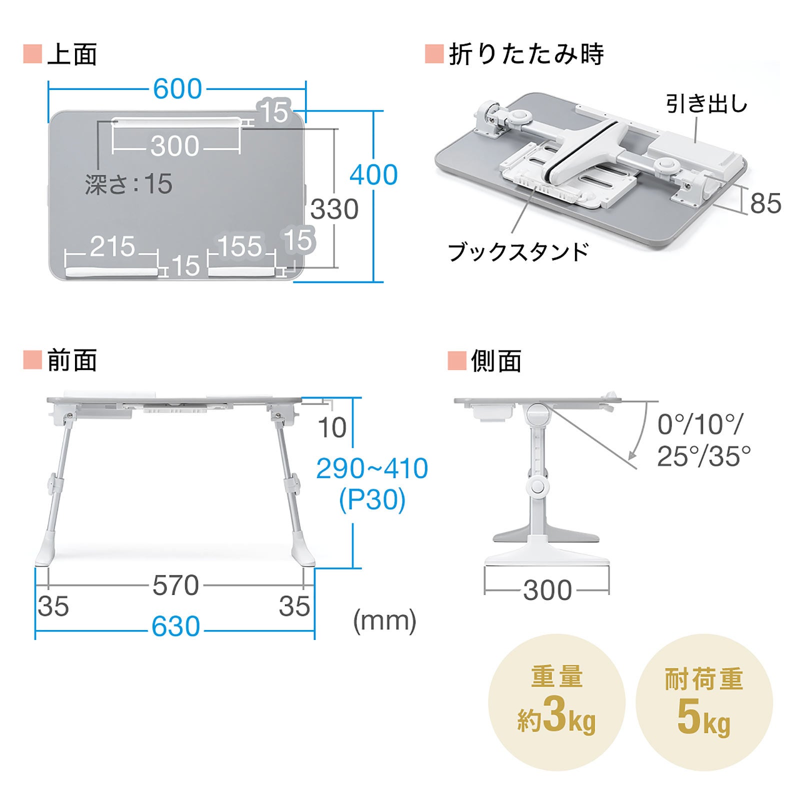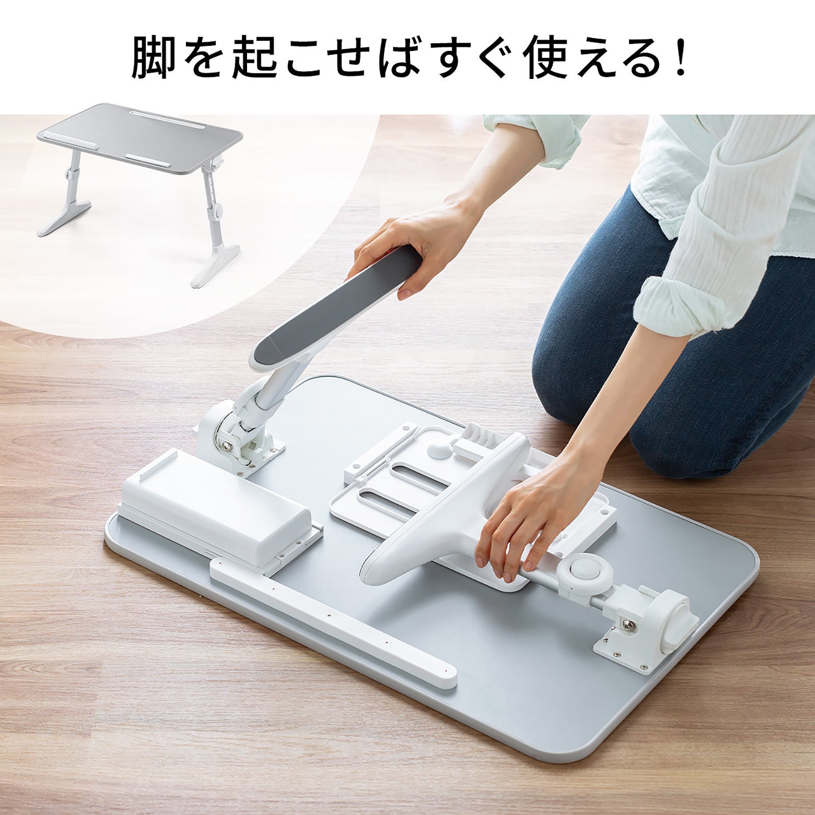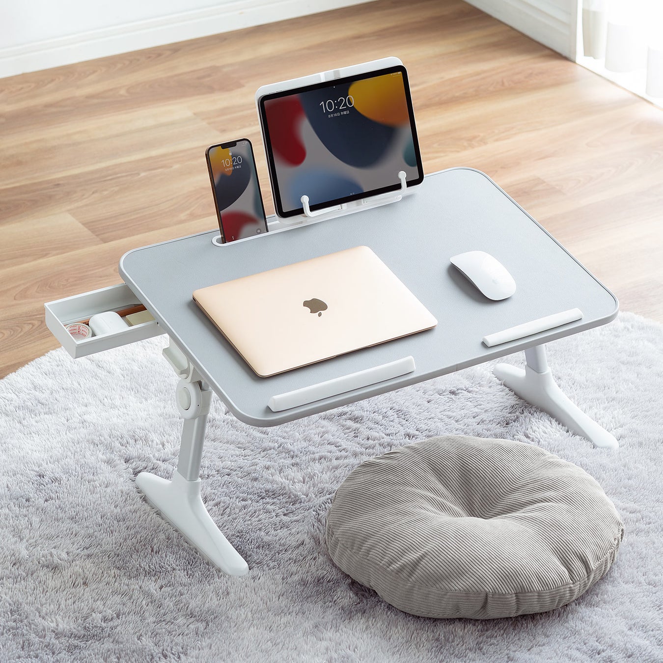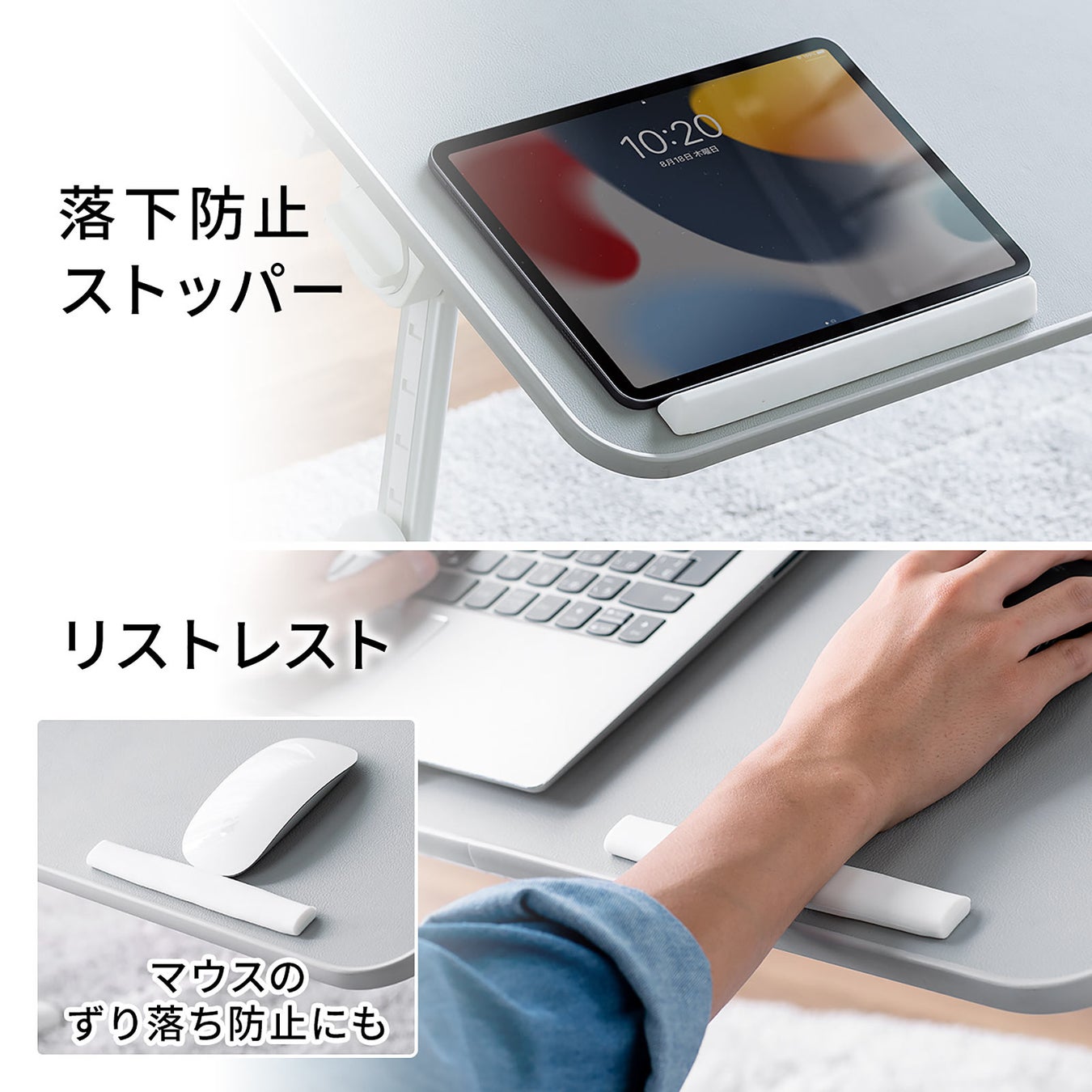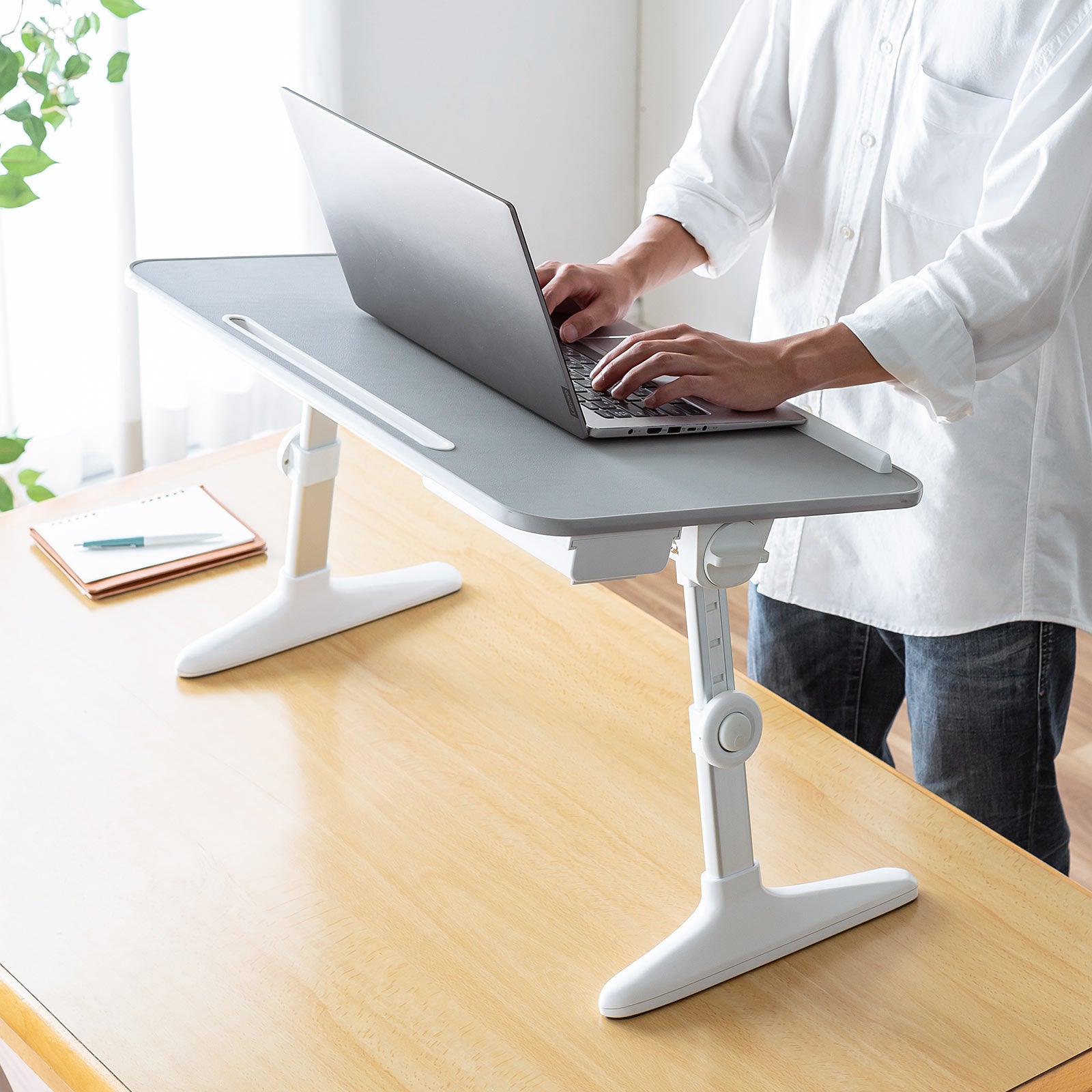 折りたたみデスク 折りたたみノートパソコンデスク 持ち運びデスク 高さ調整 角度調整対応 グレー 幅60cm