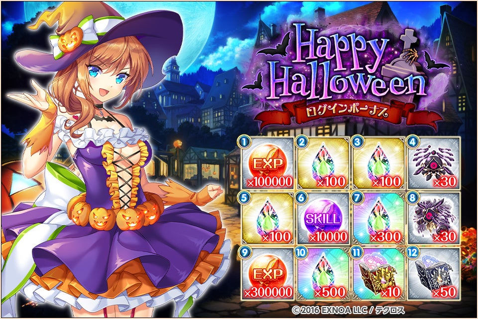 合同会社EXNOA(本社:東京都港区、CEO:村中 悠介、URL:https://games.dmm.com/)が運営するDMM GAMESにおいて『神姫PROJECT A』は、最大110連、毎日無料10連ガチャを開催する事を発表した。更に「バイアティス」「マモン」が期間限定のハロウィン衣装で登場している。