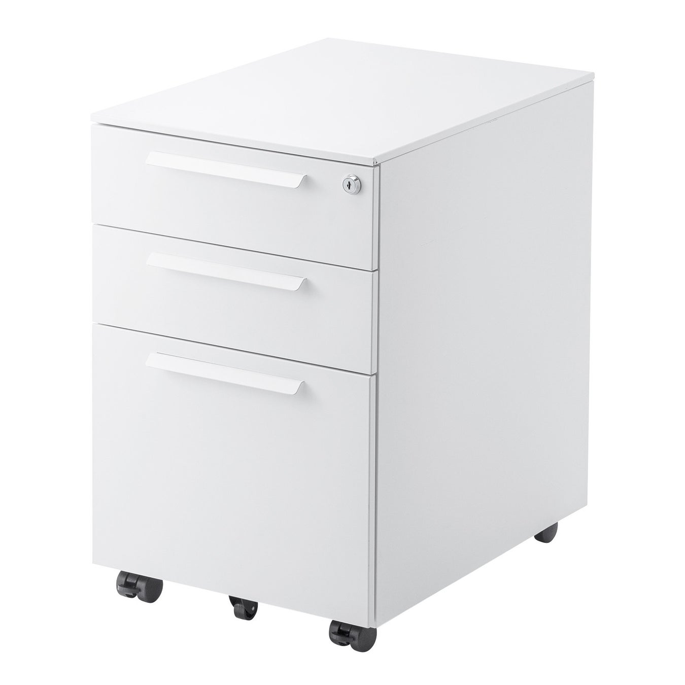 「SNW-106BK/W」は一般的なデスクに合わせやすい高さ600mmの3段式です。引出しは1段ずつ開閉できるセーフティロック機構を採用しています。