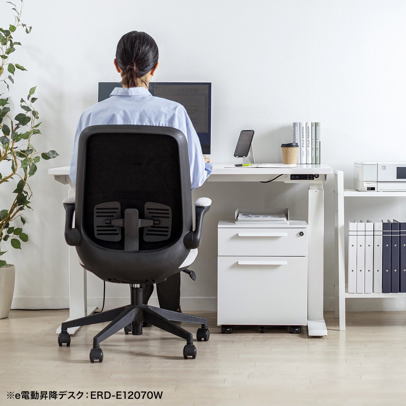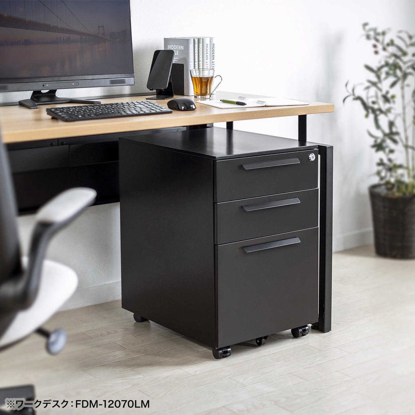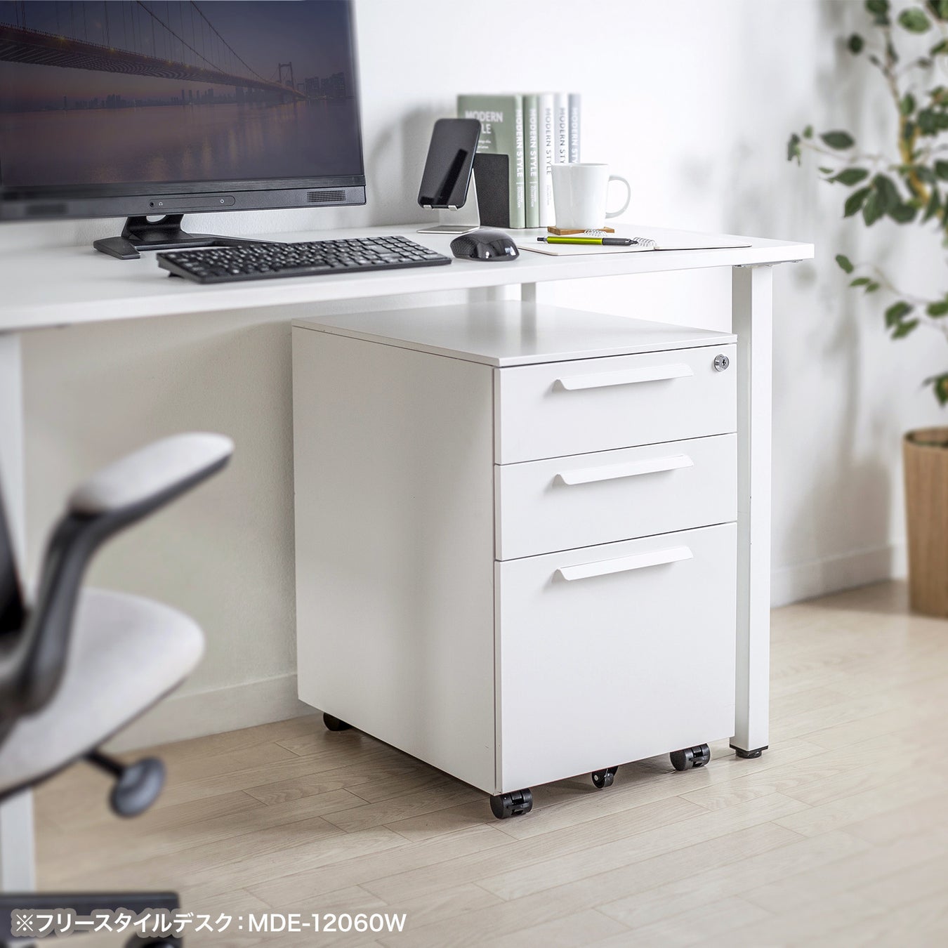 「SNW-105W」「SNW-106BK/W」はデスク下に置いて使えるキャビネットです。シンプルなデザインなので、様々なデスクと組み合わせて使用できます。