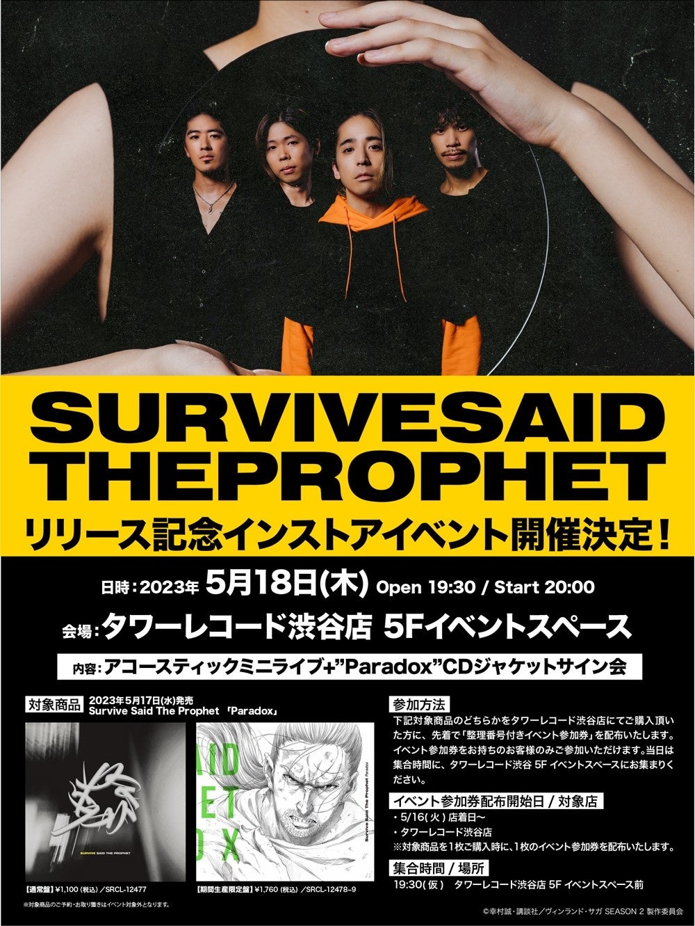 対象店舗:https://www.sonymusic.co.jp/Music/Info/survivesaidtheprophet/shoplist/230517/