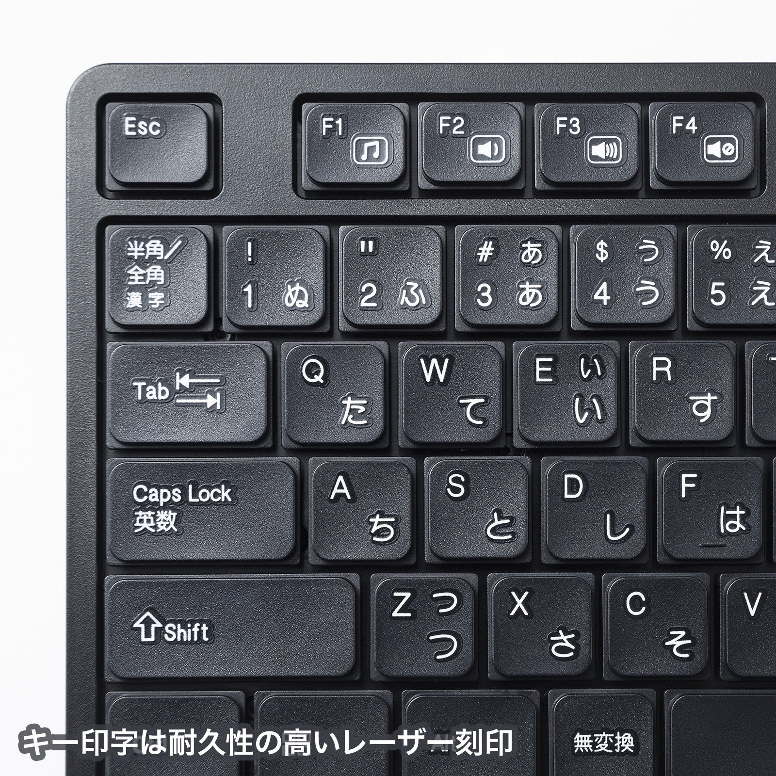 キートップの印字には耐久性に優れたレーザー刻印を採用しており、文字が消えにくくなっています。