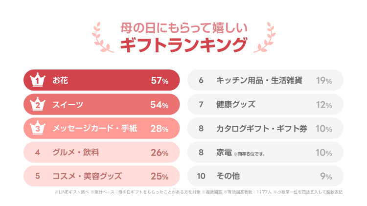 【LINEギフト】お母さんがもらって嬉しい「母の日ギフト」最新ランキング発表 母の日限定メッセージカードで想いを届ける!母の日特集を本日より公開