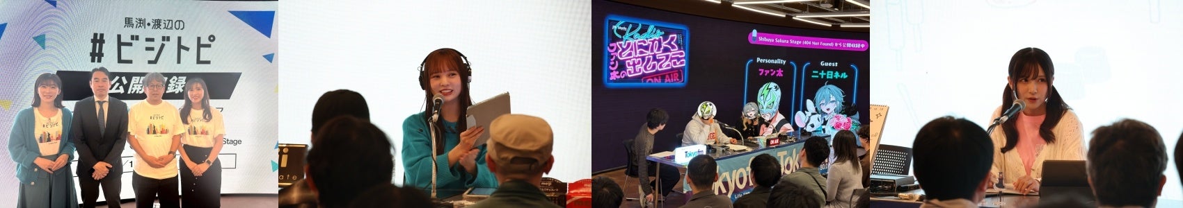 Shibuya Sakura Stage 404 Not Foundでは、『馬渕・渡辺の#ビジトピ 公開収録 supported by 第一三共ヘルスケア』、『明治ミルクチョコレート presents MINAの軽音楽部』、『ファン太のとにかく出してこ』、『佐倉初のういすくり~む』4番組の公開収録を実施。先着・事前応募で当選したリスナーが集いました。この収録の模様は後日TOKYO FMにてオンエア/TOKYO FMポッドキャストにて配信いたします。
