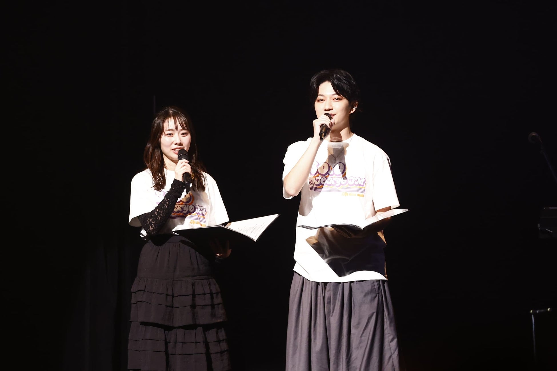 公開生放送は、来場したリスナー全員で唱和するタイトルコールでスタート!続いて、それぞれのパーソナリティが自身の番組をPR。互いにツッコミを入れながら、時にイジリ合いながらの進行で、番組間の仲の良さが垣間見えるオープニングとなりました。朗読劇への挑戦に向け、パーソナリティがそれぞれの演技経験を披露。演劇歴がなしな人もいるなか、ユージの驚くべき出演歴とは…!?