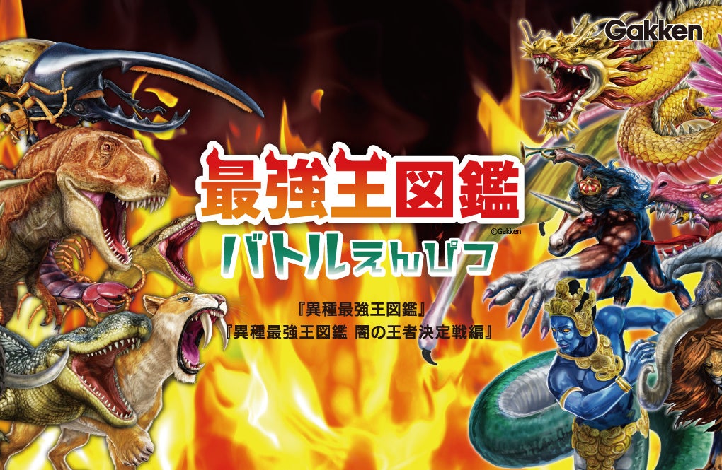 | 「最強王図鑑」とは 動物界や恐竜界など、あらゆる種属の猛者たちをトーナメント方式で戦わせ、最強を決めてしまおう」というコンセプトで作られたシミュレーション図鑑。これまでに「動物」「絶滅動物」「恐竜」「妖怪」「昆虫」「幻獣(モンスター)」「水中」そして、新刊「神話」と各界でバトルを繰り広げ、ナンバーワンを決定している。既 10 巻。シリーズ累計 200 万部を突破※。(学研プラス刊)※ 2021 年 12 月 20 日現在 |