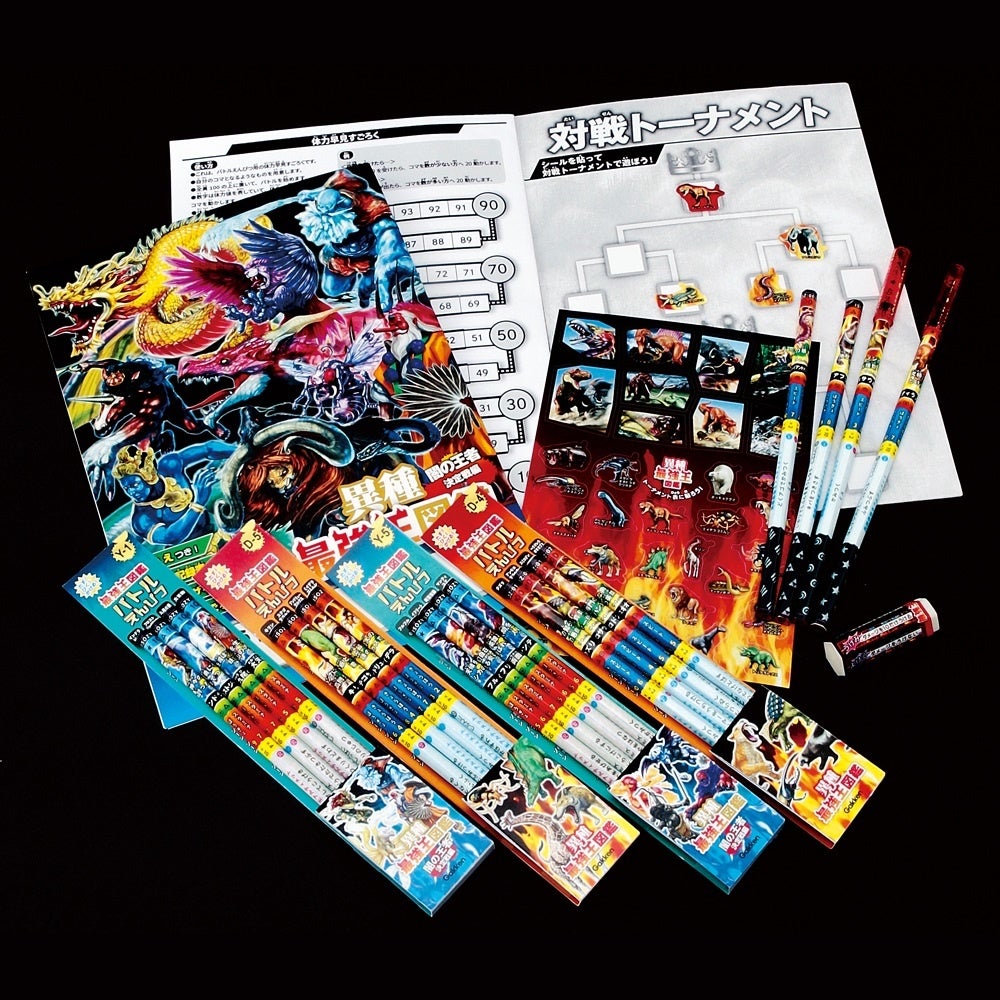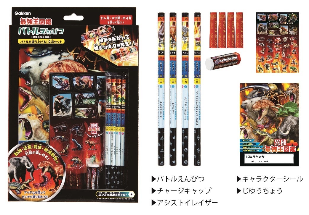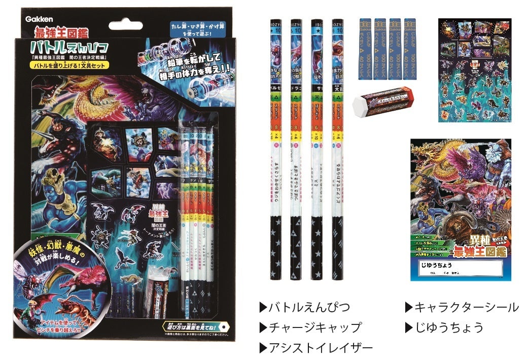 シリーズの中から「異種最強王図鑑」と「異種最強王図鑑 闇の王者決定戦編」の『最強王図鑑 文具スターターキット』と『最強王図鑑 バトルえんぴつ4本セット』が、ついに発売!遊びながら計算力も身につく!