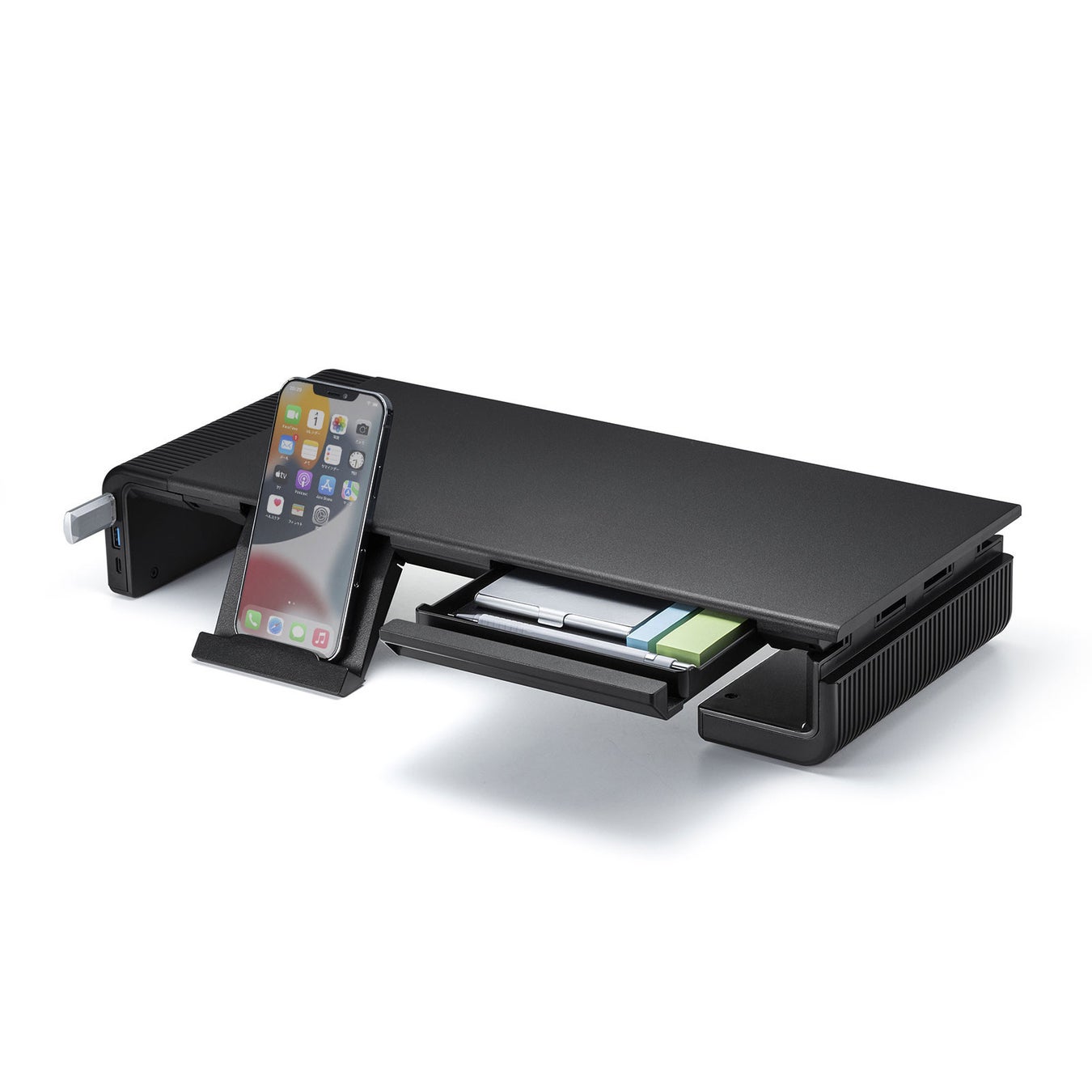 USB Type-C接続ハブ付き机上ラック(ブラック、ホワイト)