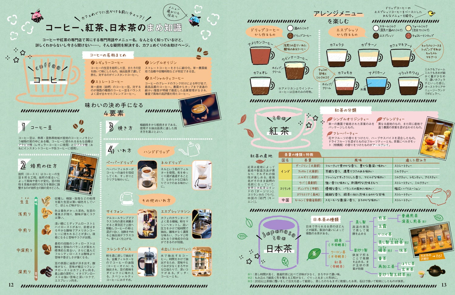シングルオリジンって何? カフェモカって何が入っているのだろう? 深蒸し煎茶ってどんな味? など本書で登場するお店で出てくるコーヒーやお茶を楽しむ前に読んで役立つ知識をチェック!