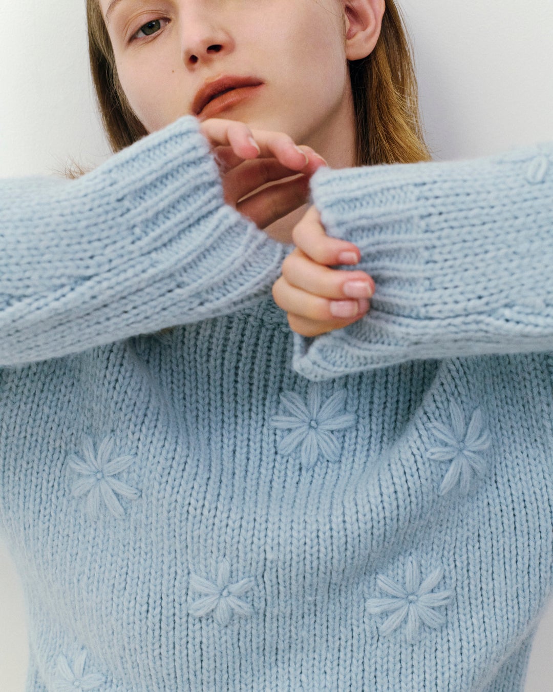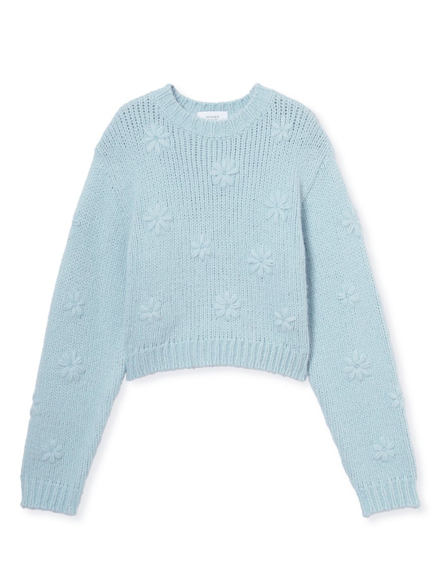 人気のフラワーモチーフのニットに新宿ルミネ1限定カラーが登場。ローゲージの柔らかなニットに、ふっくらとしたフラワーモチーフ刺繍を贅沢に施したプルオーバー。手編みのようなぬくもりと華やかなデザインで、1枚で着映える主役トップス。
