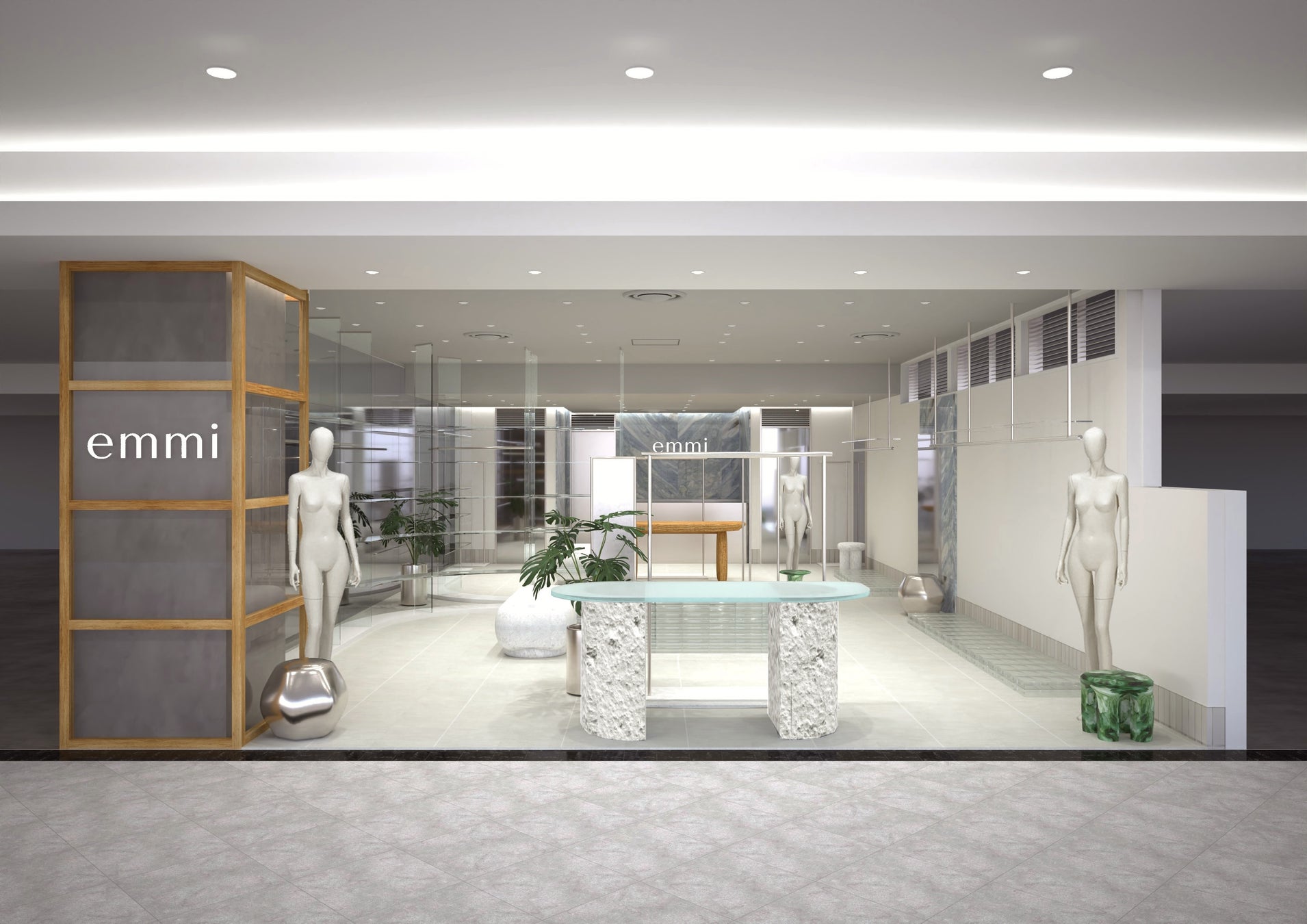 “クリアモード ’'をブランドコンセプトに掲げるemmi より、環境に配慮したクリーンな素材を多用する‘‘サステナブルコンセプトストア’'が誕生。