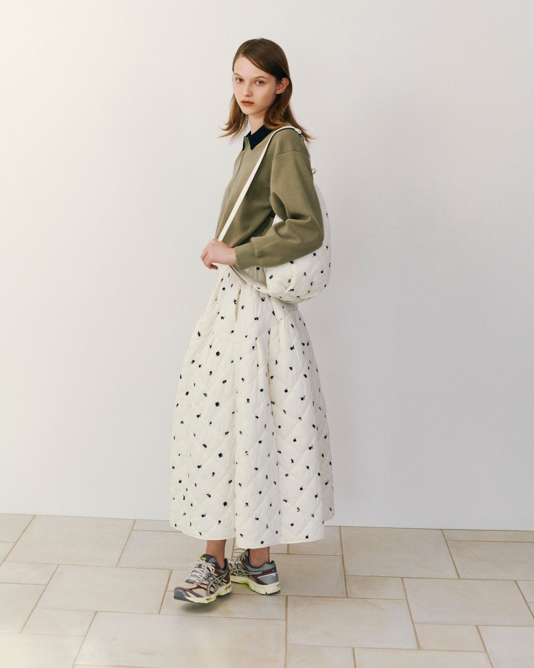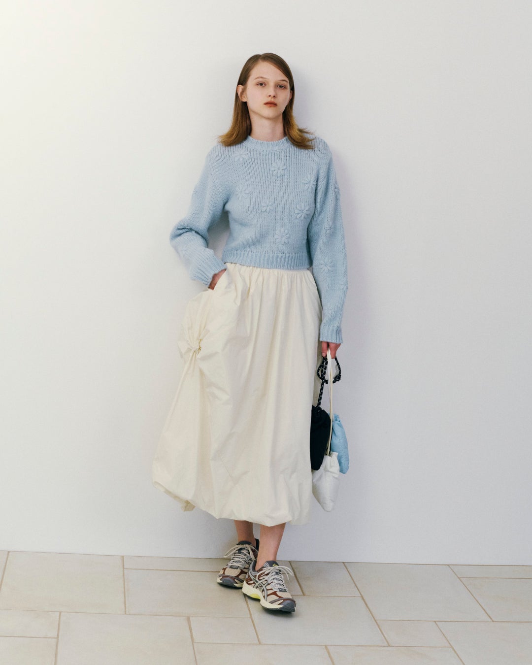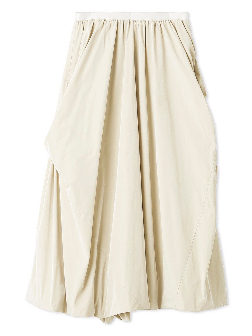 ねじりを効かせた独特なディティールと、丸みを帯びたバルーンシルエットが魅力のスカート。